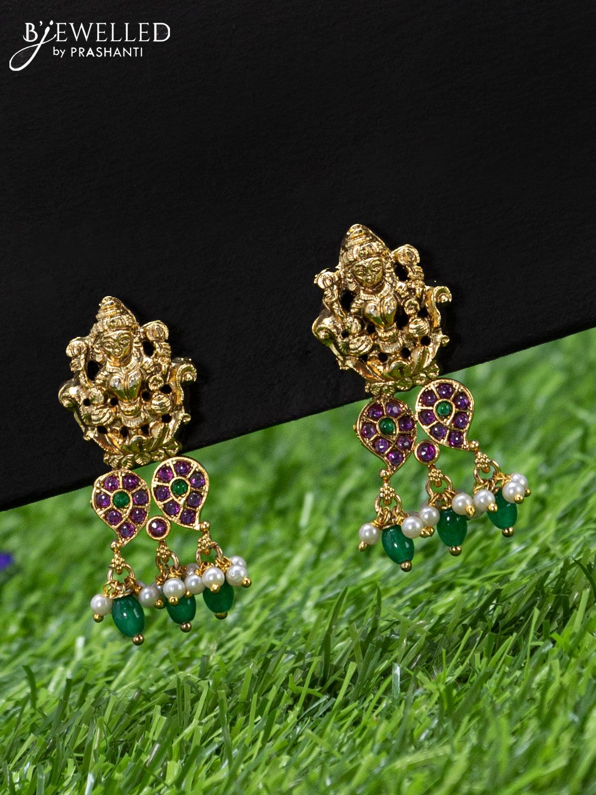 Black thread necklace with kemp stone lakshmi pendant and green beads hangings