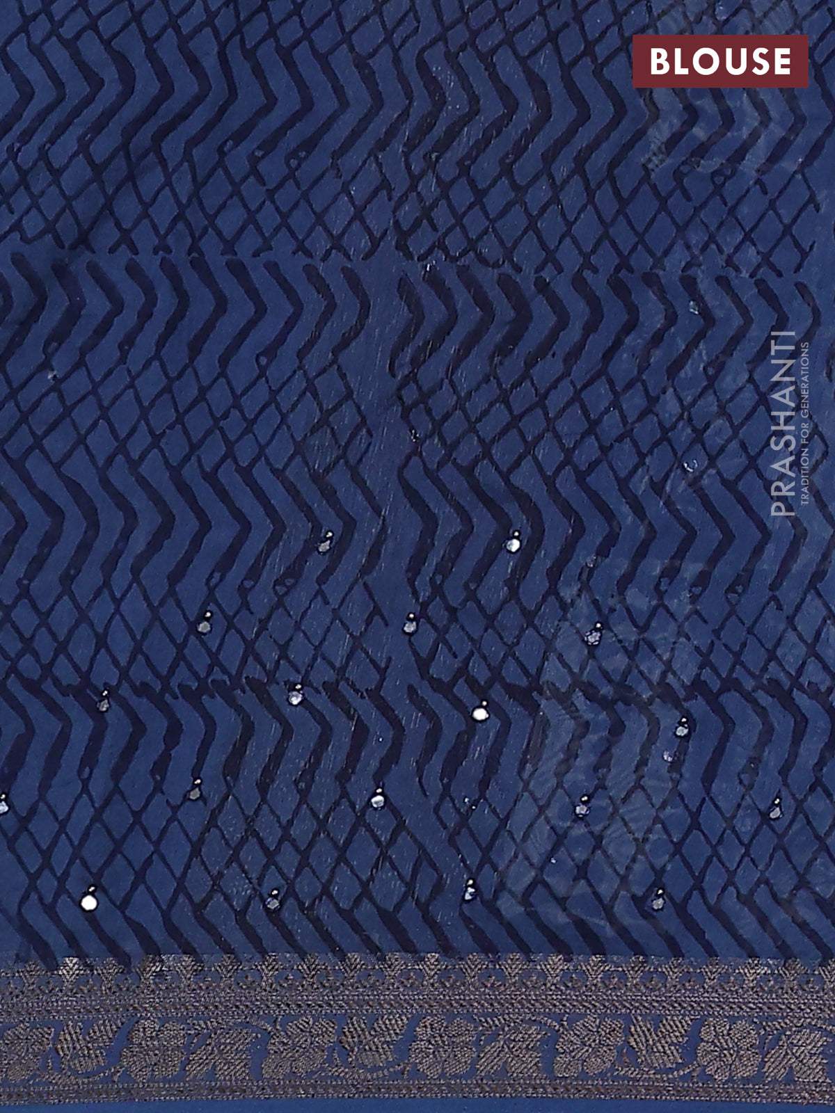 Chanderi silk cotton saree blue with allover prints & mirror work and zari woven border
