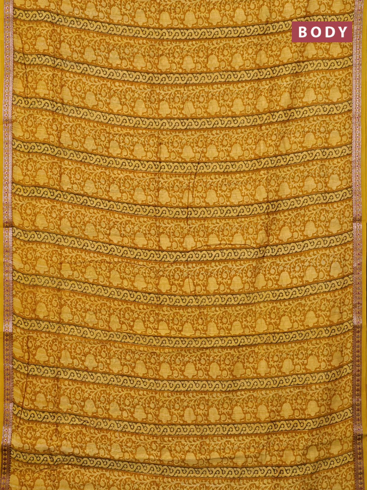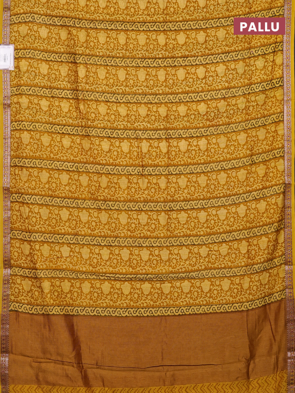 Chanderi silk cotton saree mustard yellow with allover prints and banarasi style border