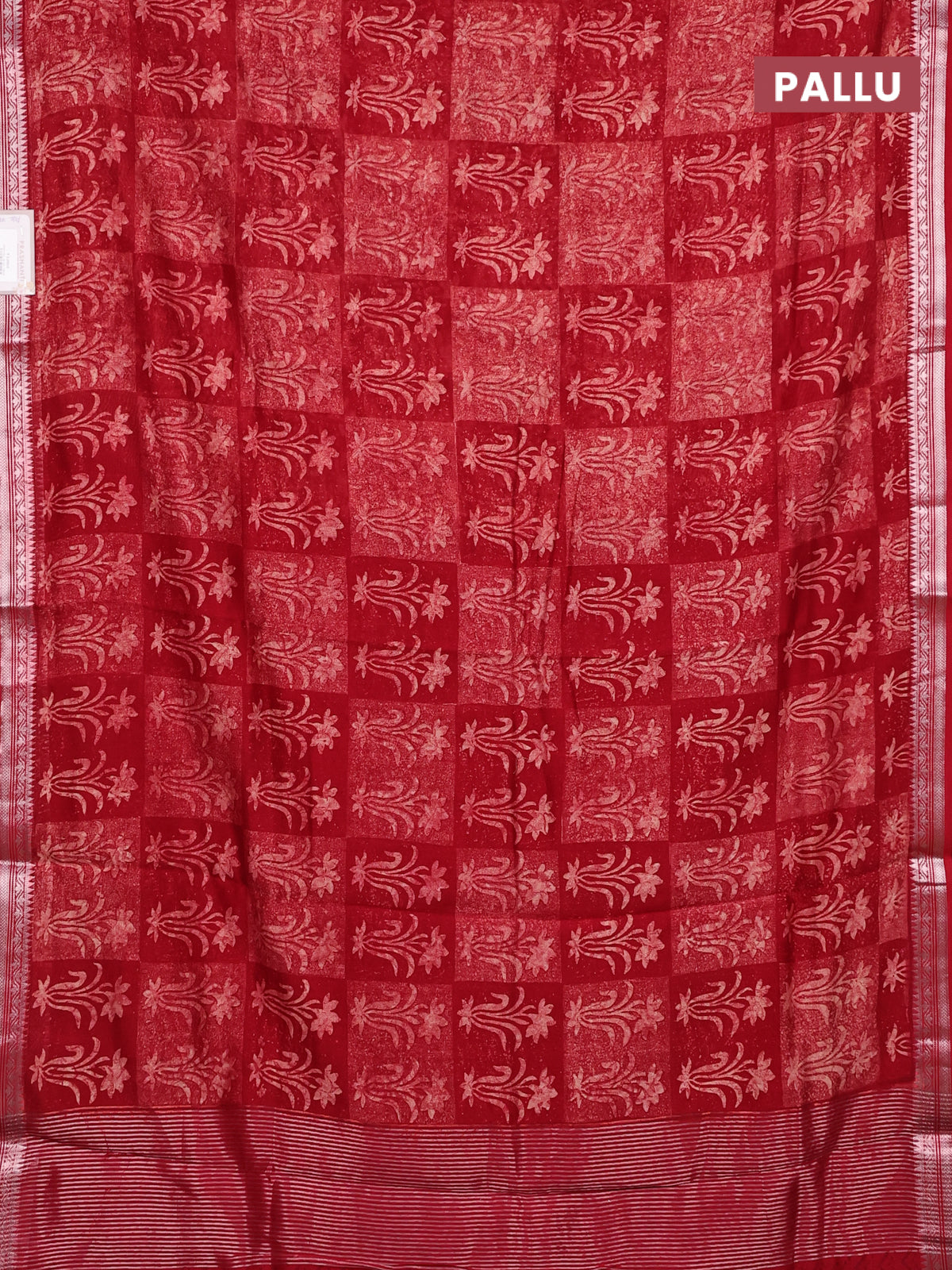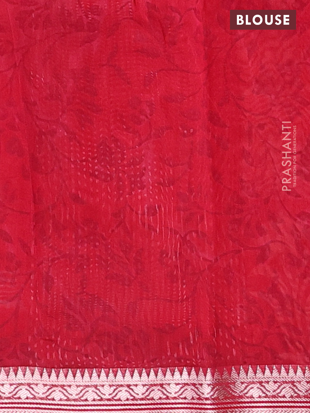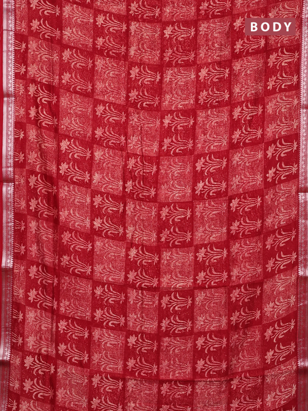 Chanderi silk cotton saree red with allover floral prints and banarasi style border