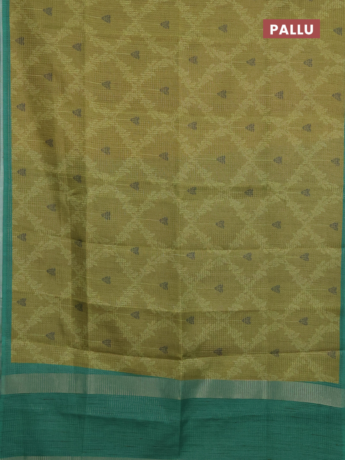 Chappa saree light green and green with allover small zari checked pattern & prints and piping border