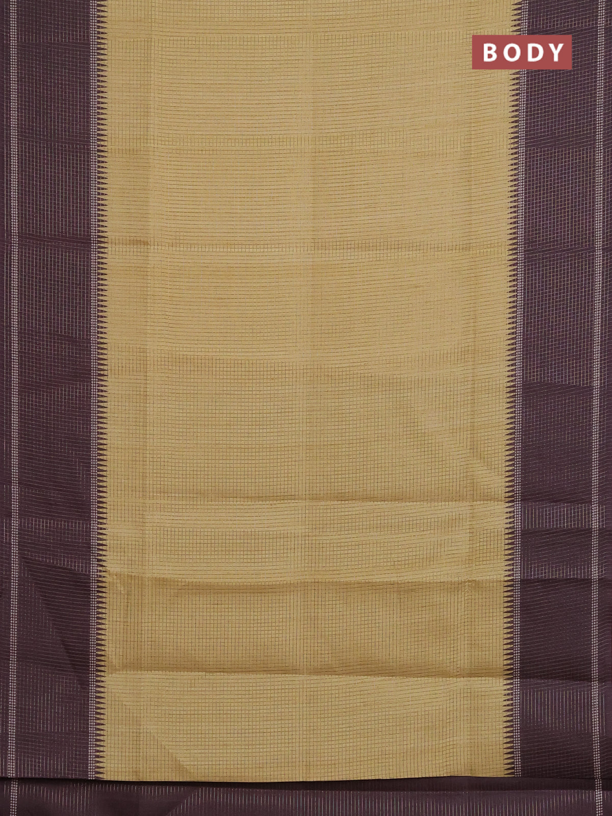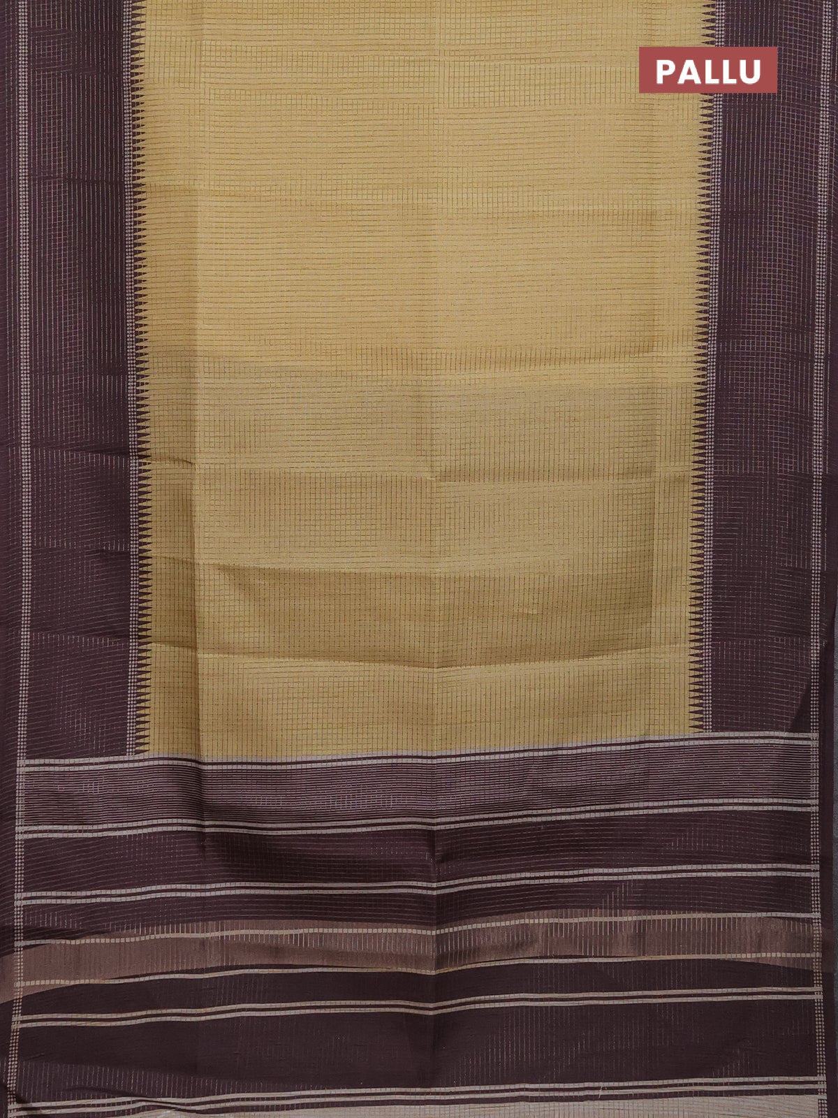 Chappa saree pale yellow and deep wine shade with allover small zari checked pattern and temple design zari woven border