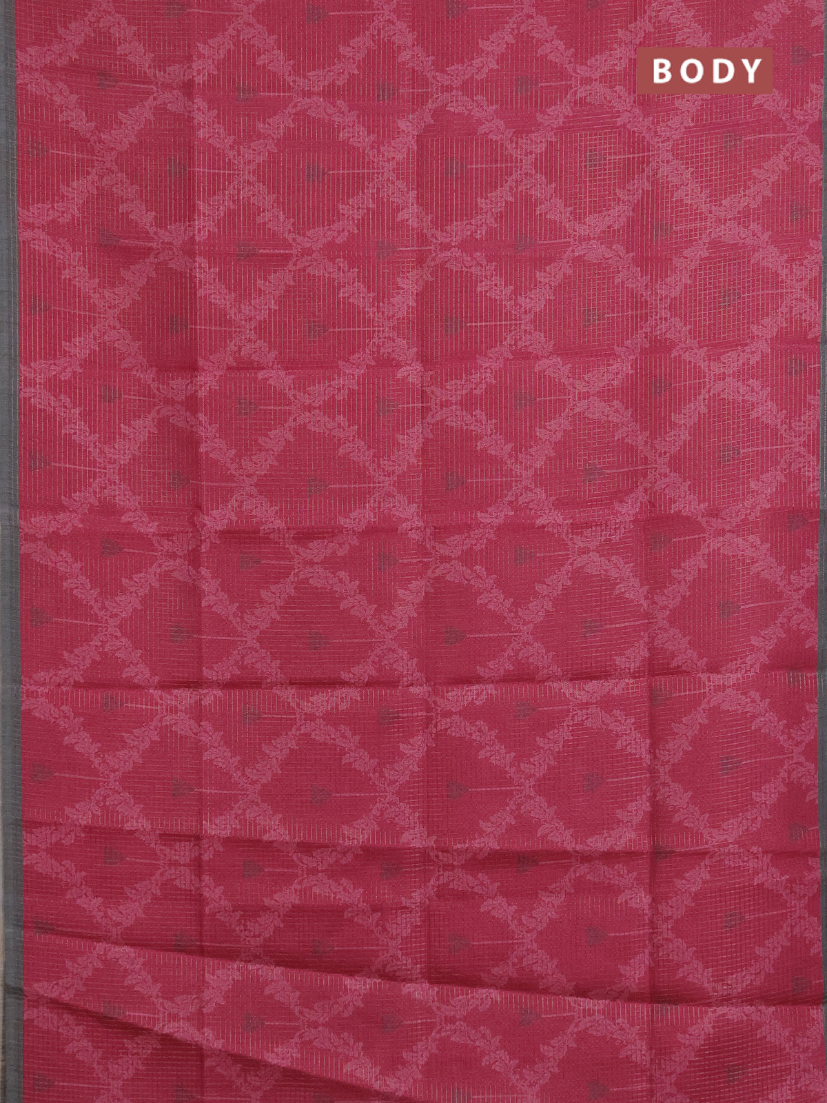 Chappa saree pink and grey with allover small zari checked pattern & prints and piping border