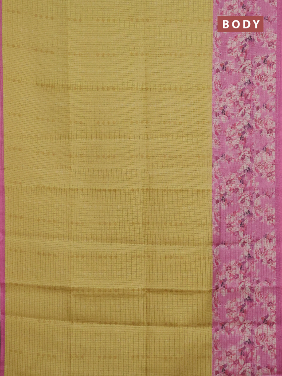 Chappa saree yellow and pink with allover small zari checked pattern and floral digital printed pallu