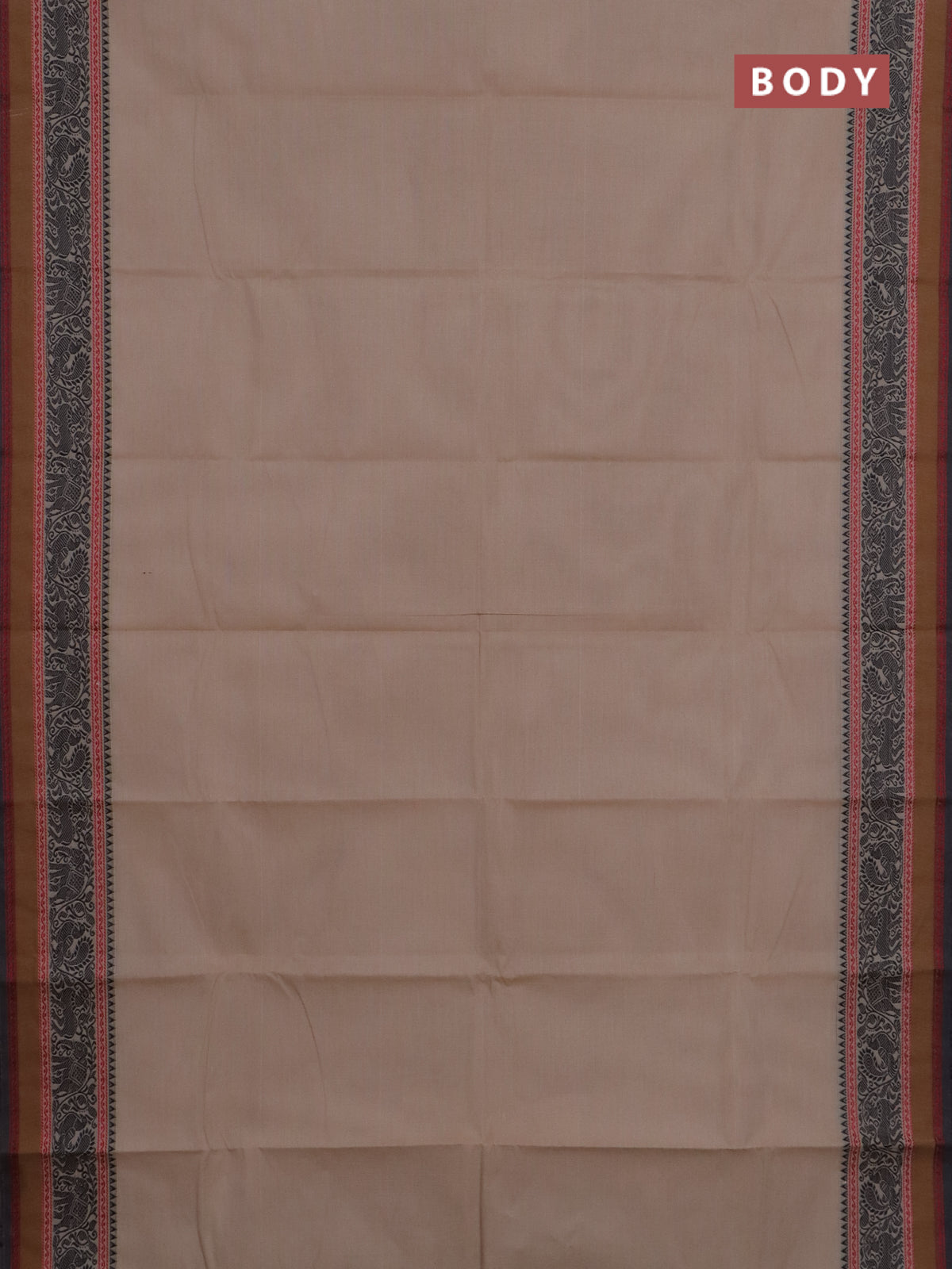 Chettinad cotton saree beige and black with plain body and thread woven border