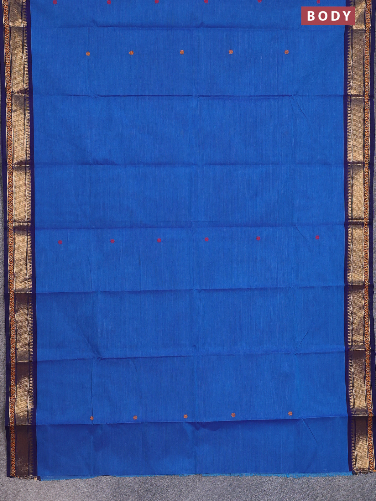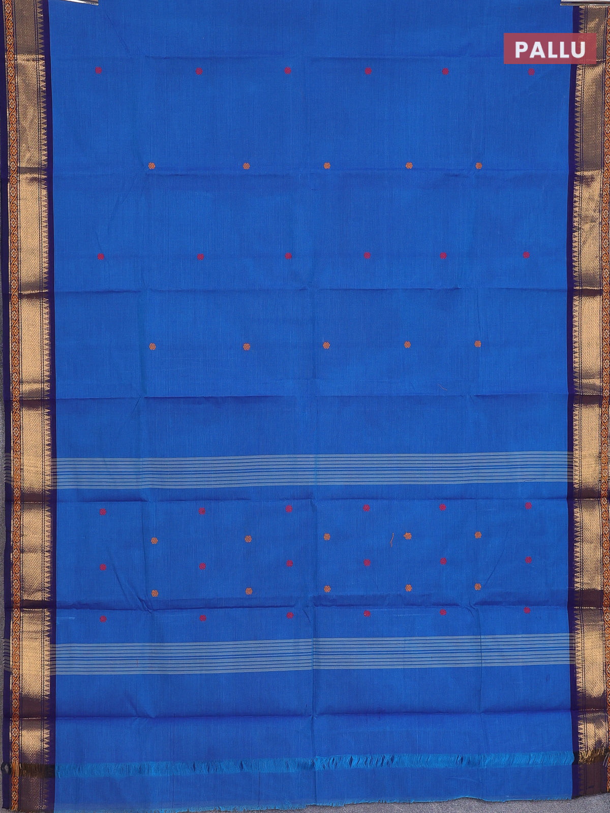 Chettinad cotton saree dual shade of blue and dark blue with thread woven buttas and zari woven border