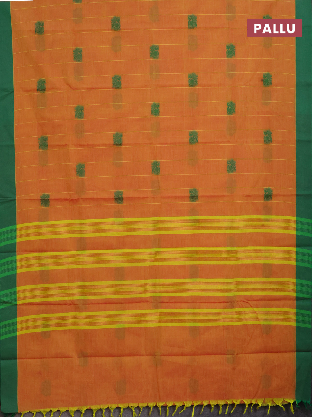 Chettinad cotton saree dual shade of yellowish pink and green with allover stripe pattern & thread woven buttas and simple border