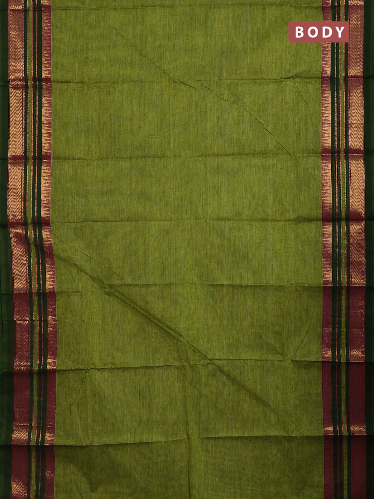 Chettinad cotton saree green and sap green pink with plain body and long zari woven border