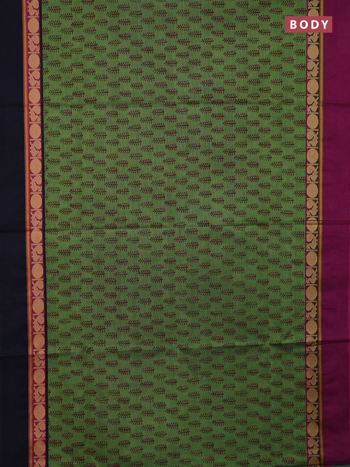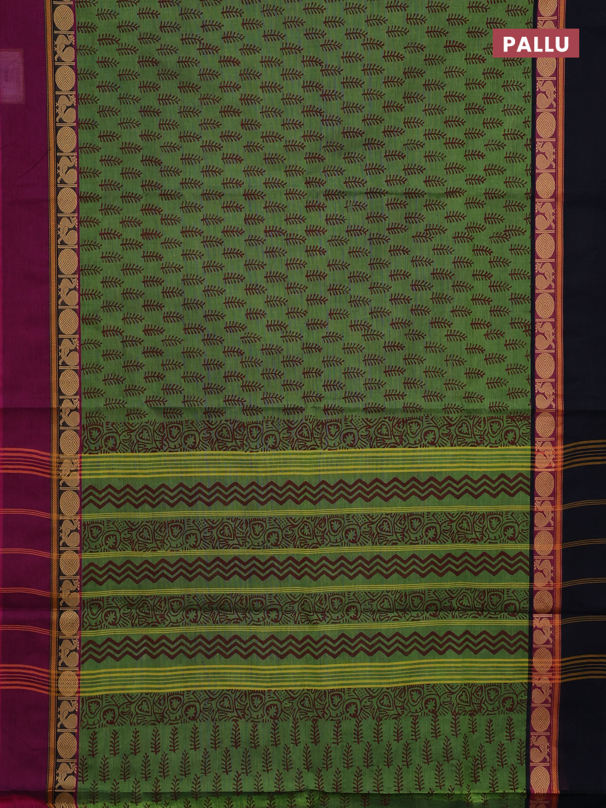 Chettinad cotton saree green shade with allover butta prints and ganga jamuna border