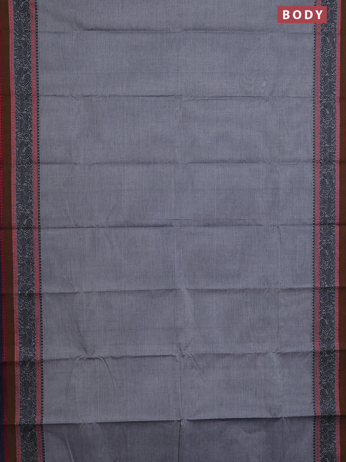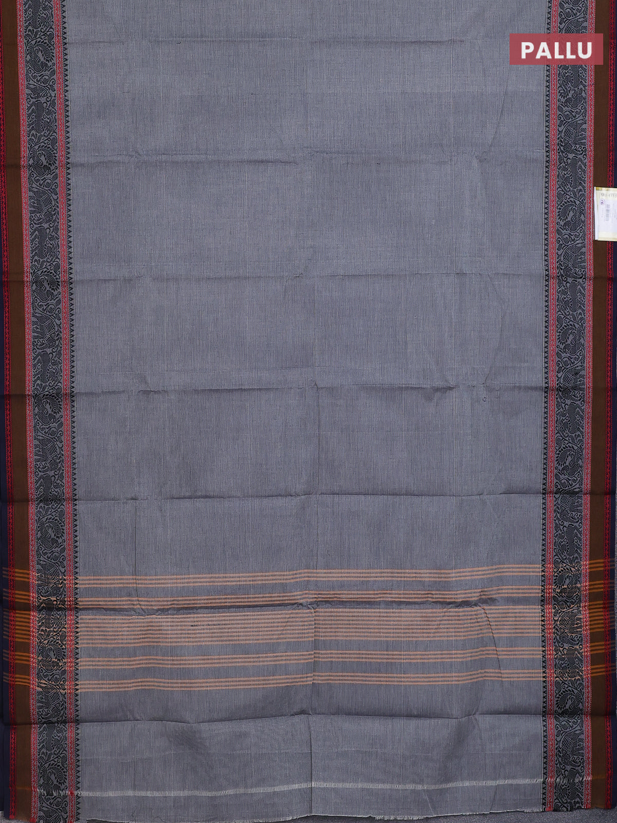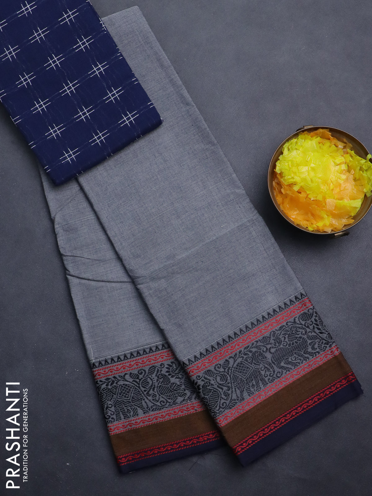 Chettinad cotton saree grey and navy blue with plain body and thread woven border