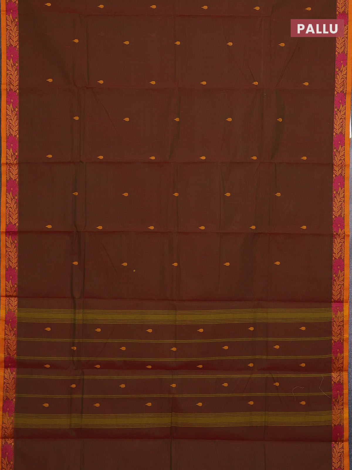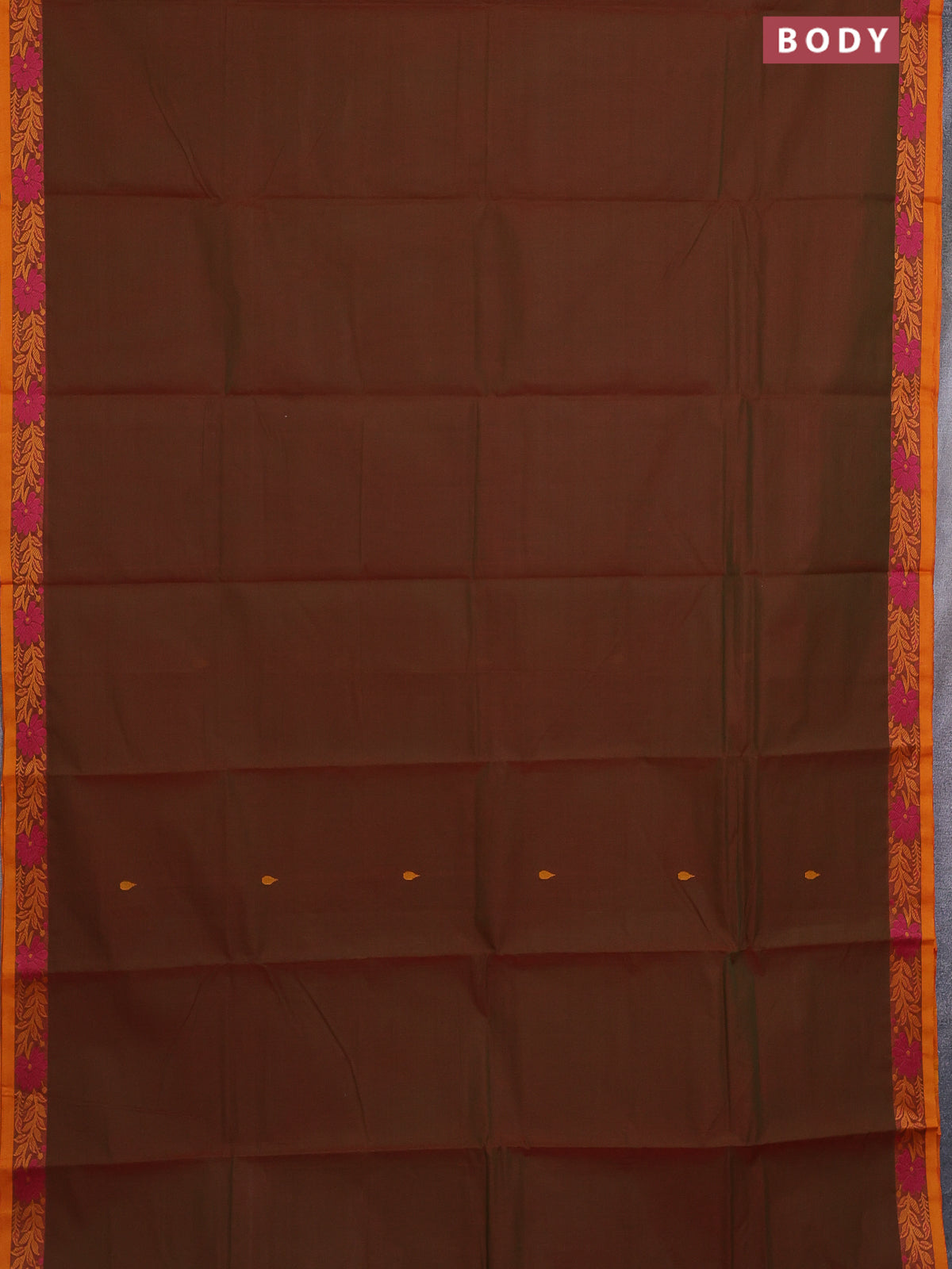 Chettinad cotton saree manthulir green and mustard yellow with thread woven buttas and thread woven border
