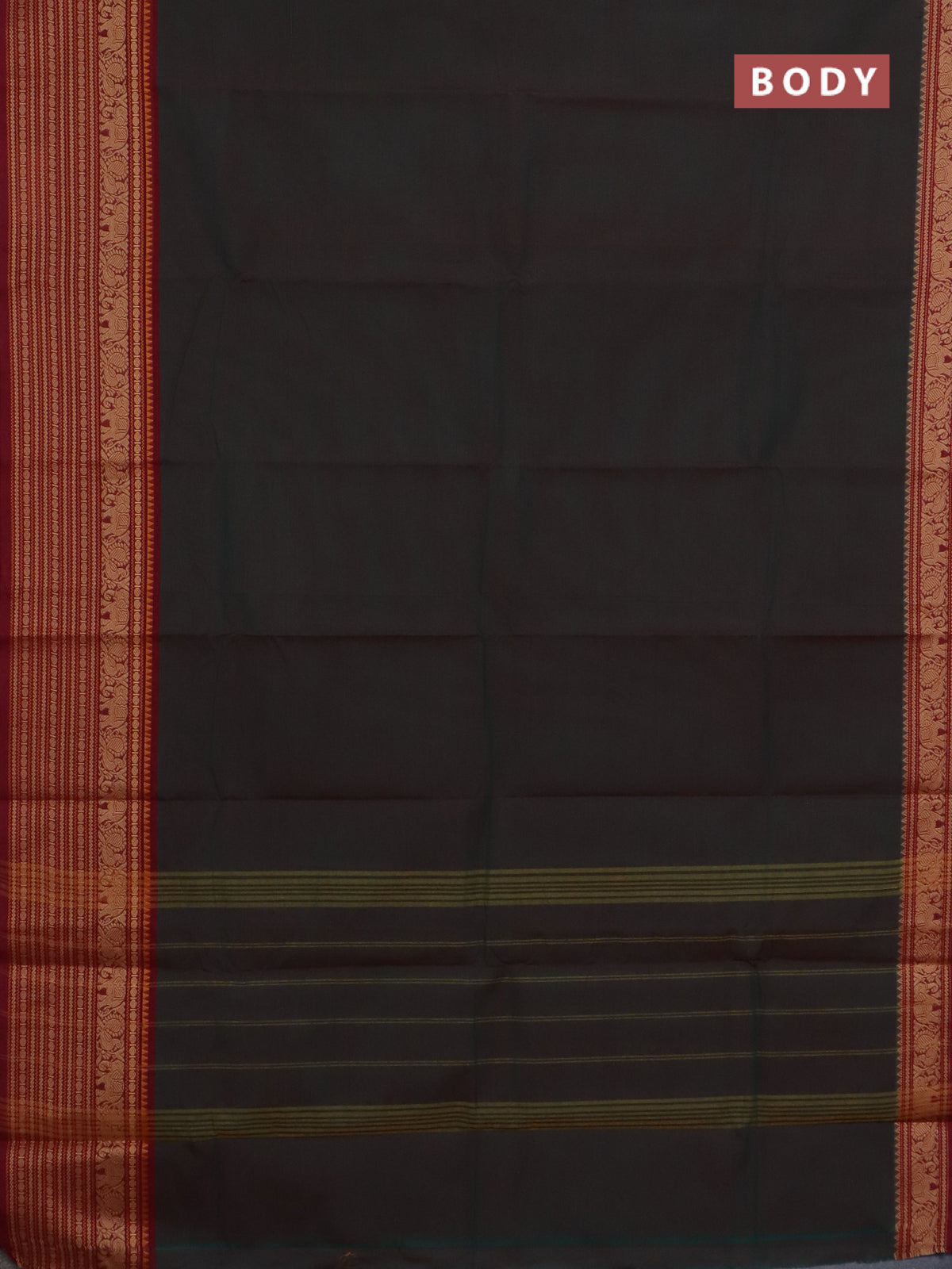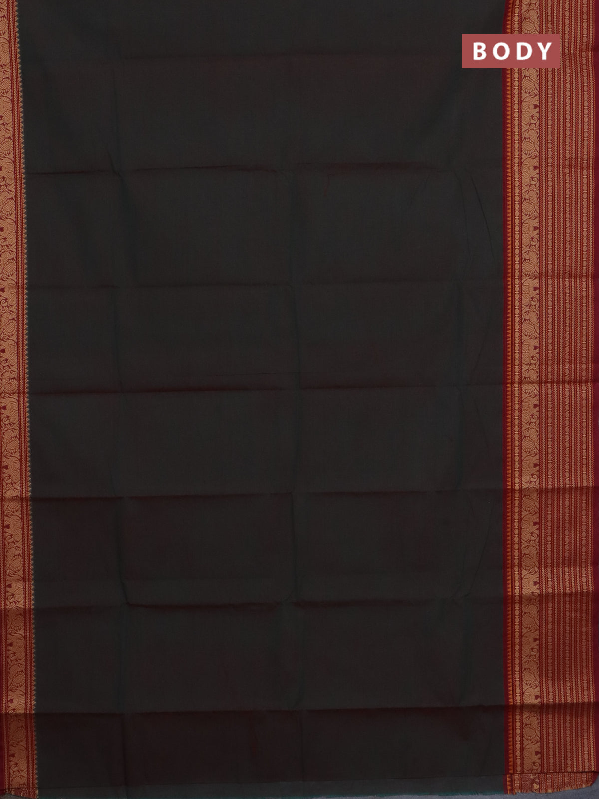 Chettinad cotton saree manthulir green and red with palin body and long thread woven border