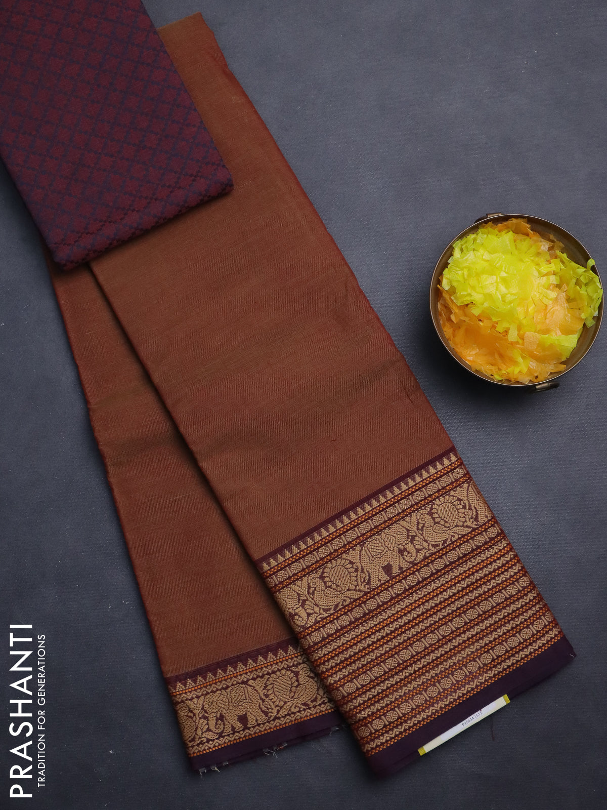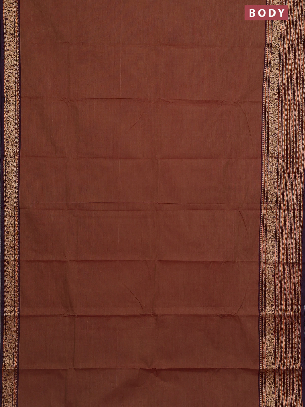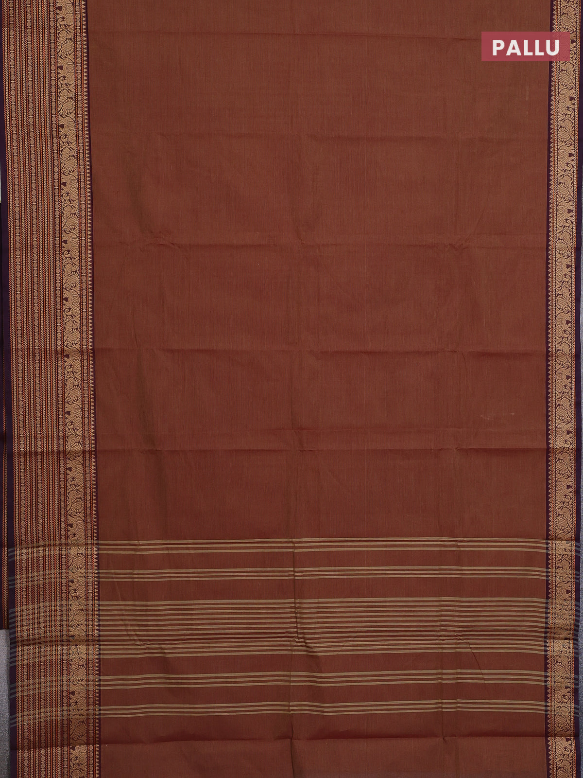 Chettinad cotton saree pastel brown and deep maroon with plain body and long thread woven border