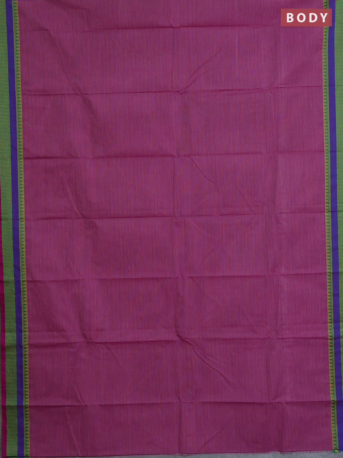 Chettinad cotton saree purple shade and purple with allover stripe pattern and thread woven border