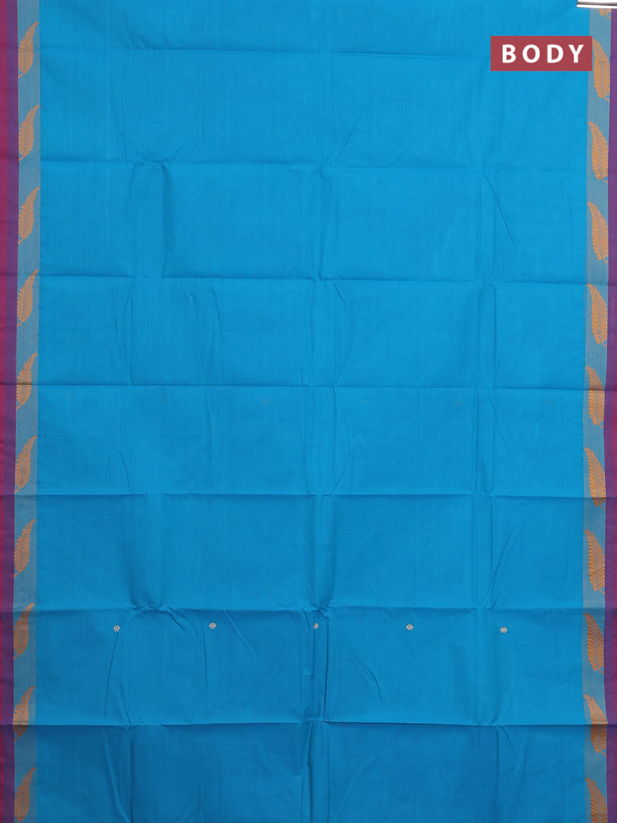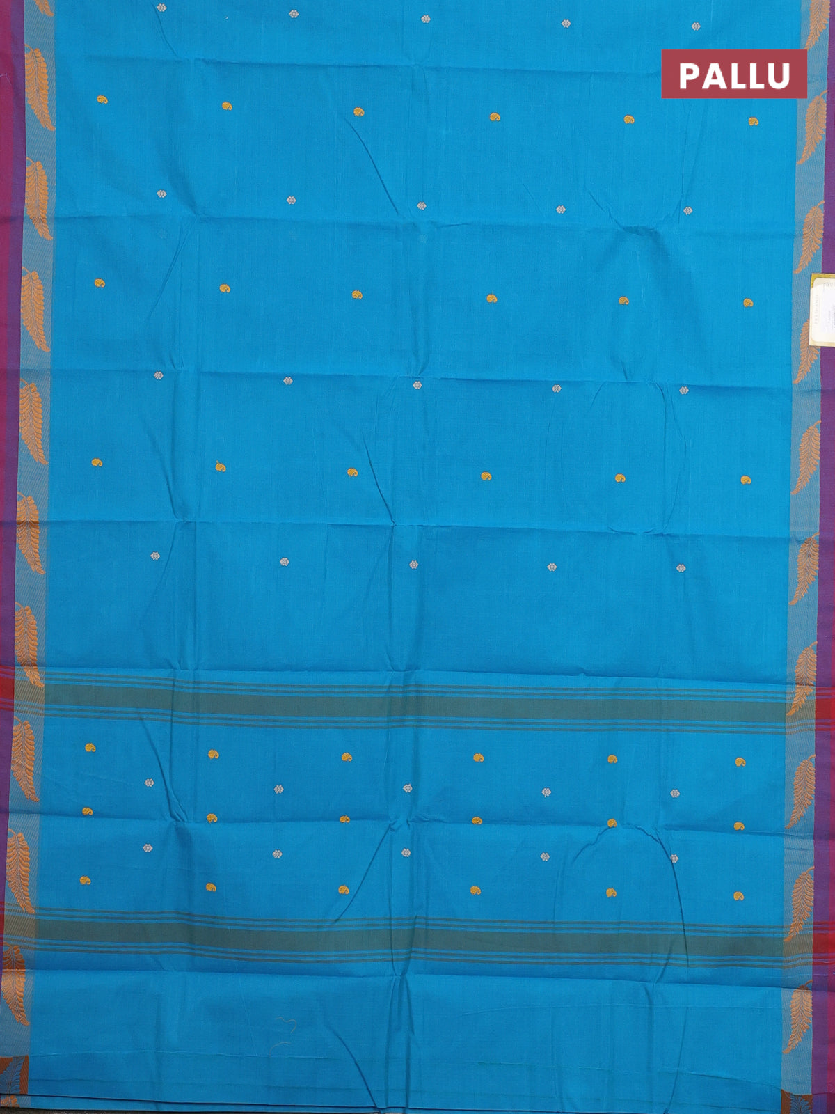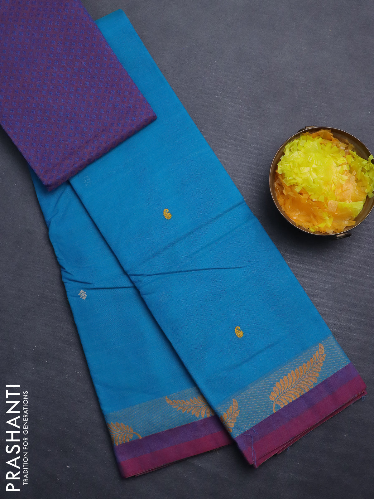 Chettinad cotton saree teal blue and dual shade of maroon with thread woven buttas and thread woven simple border