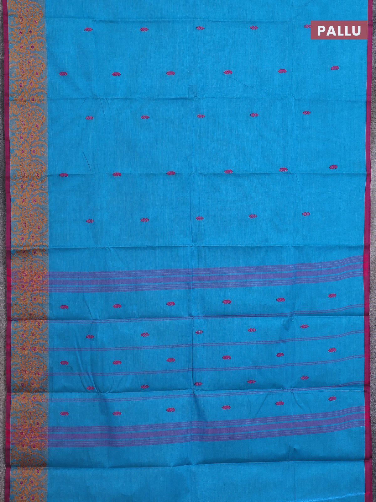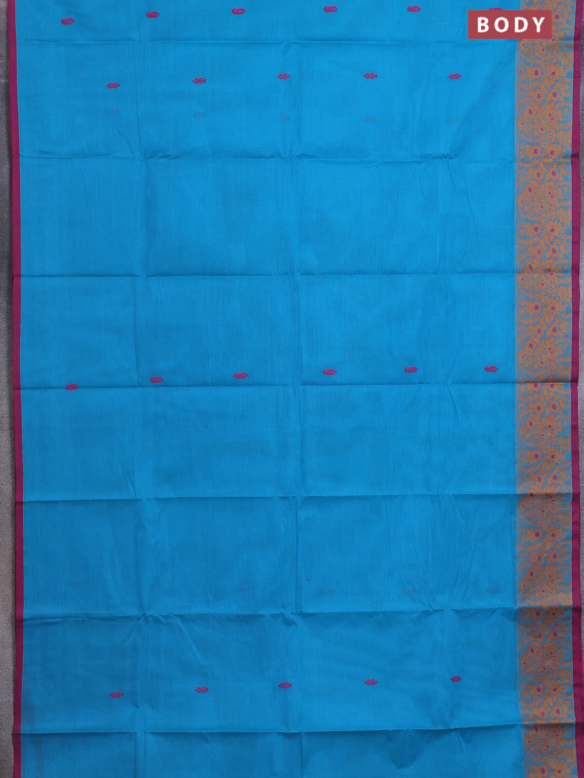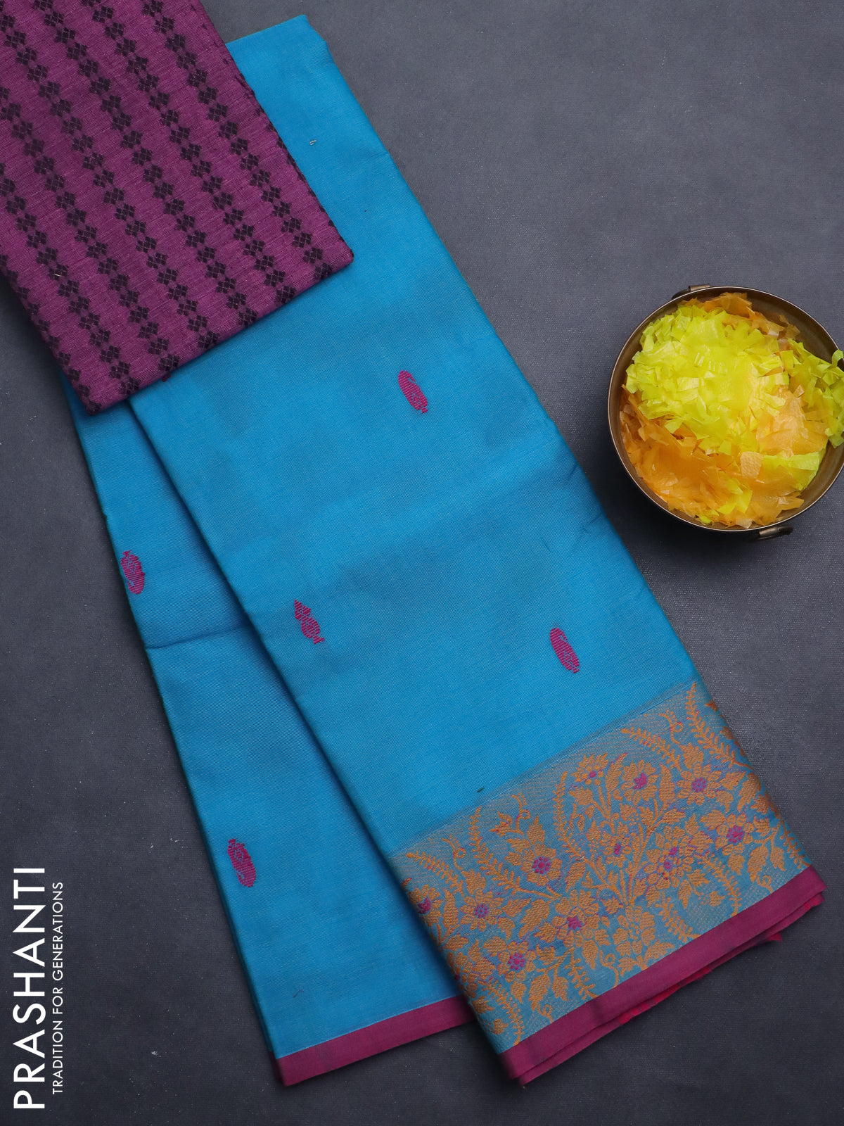 Chettinad cotton saree teal blue and magenta pink with thread woven buttas and thread woven border