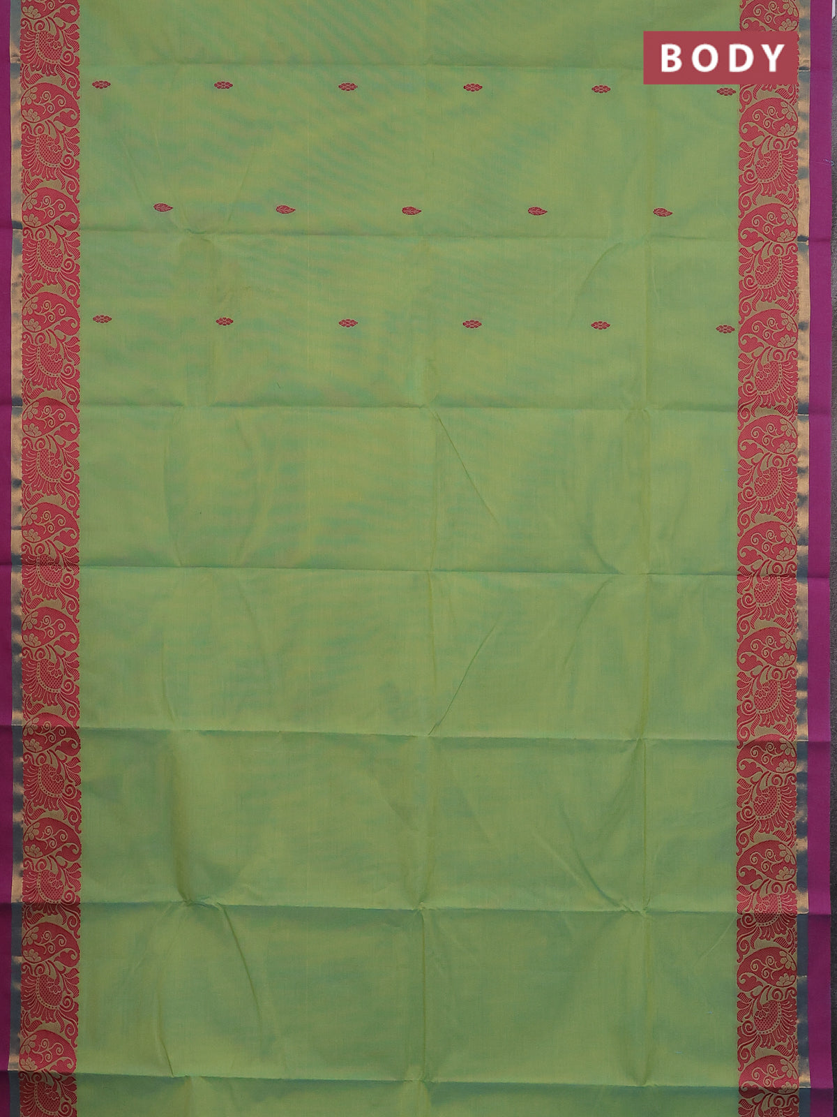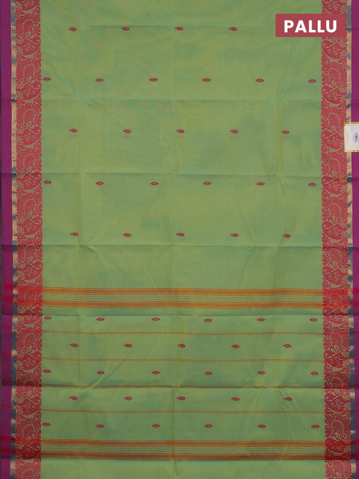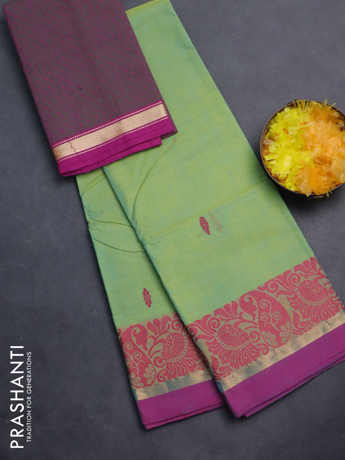 Chettinad cotton saree teal green and magenta pink with thread woven buttas and thread woven zari simple border