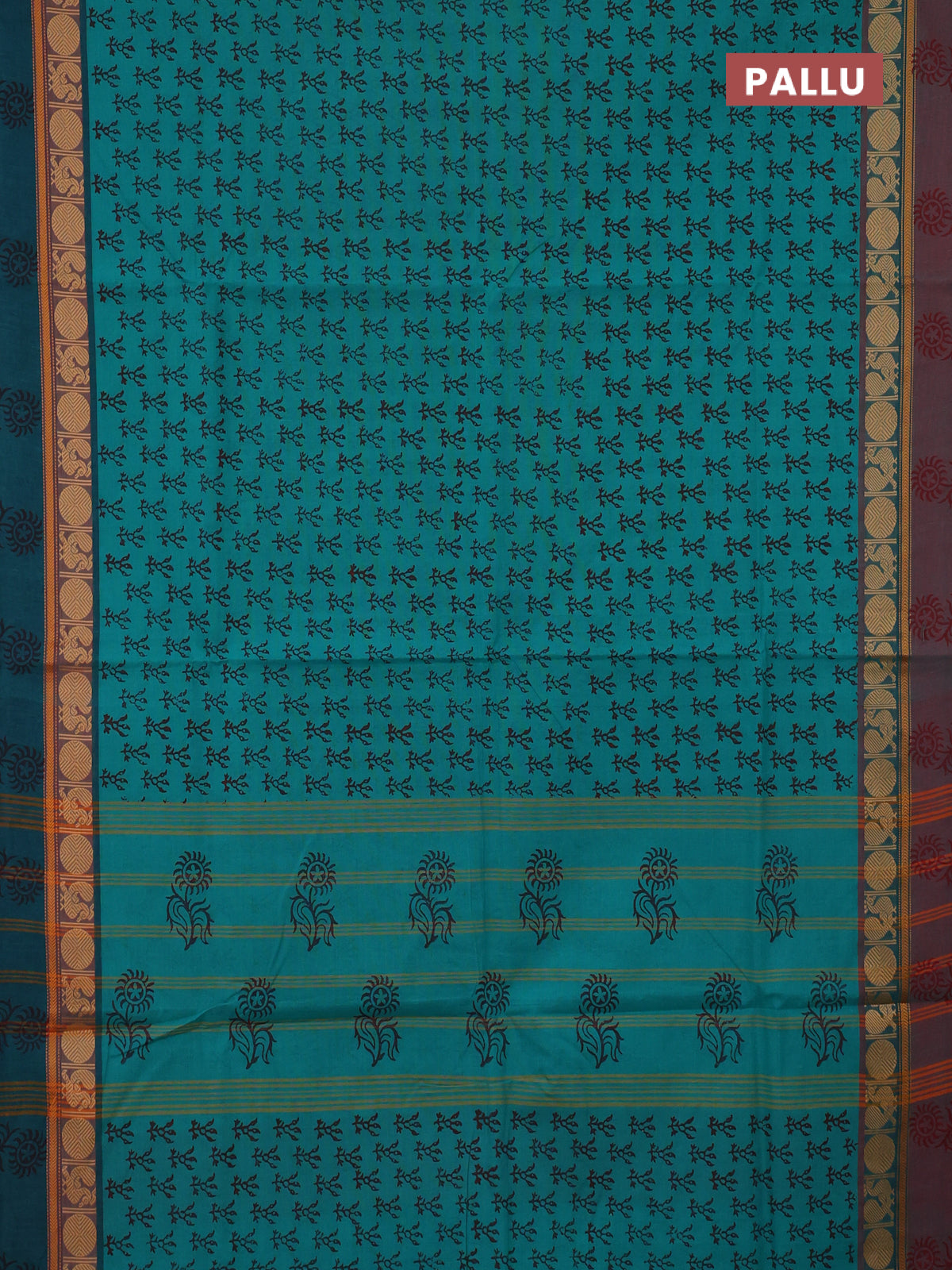 Chettinad cotton saree teal green shade with allover butta prints and ganga jamuna border