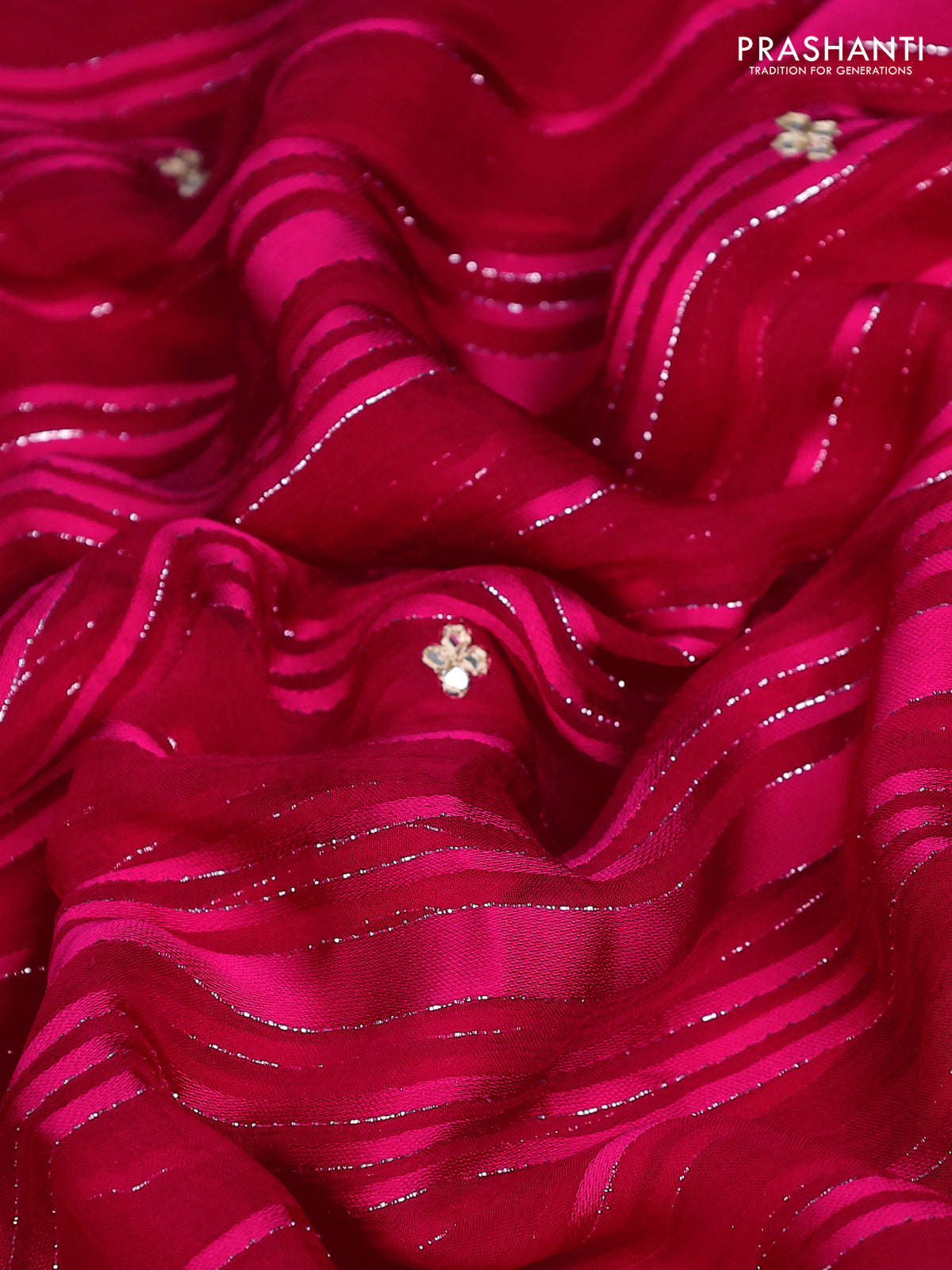 Chiffon silk saree pink with silver zari weaves & gotapatti embroidery pallu