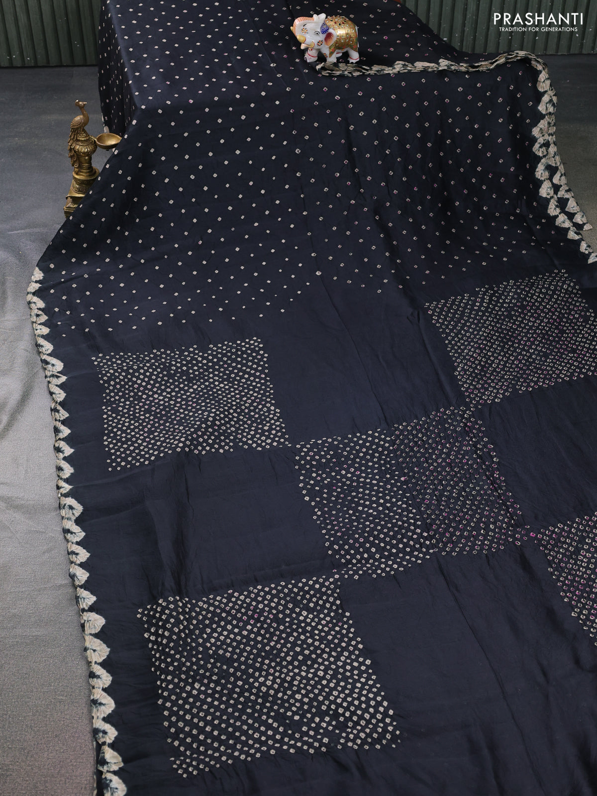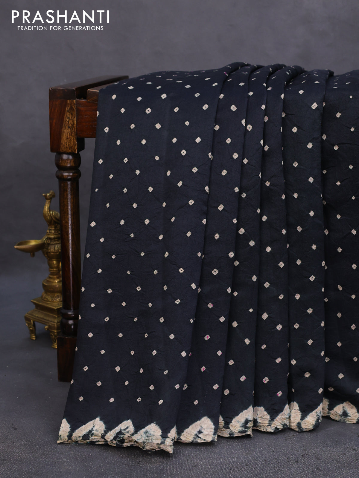 Chiniya silk saree black with allover bandhani prints