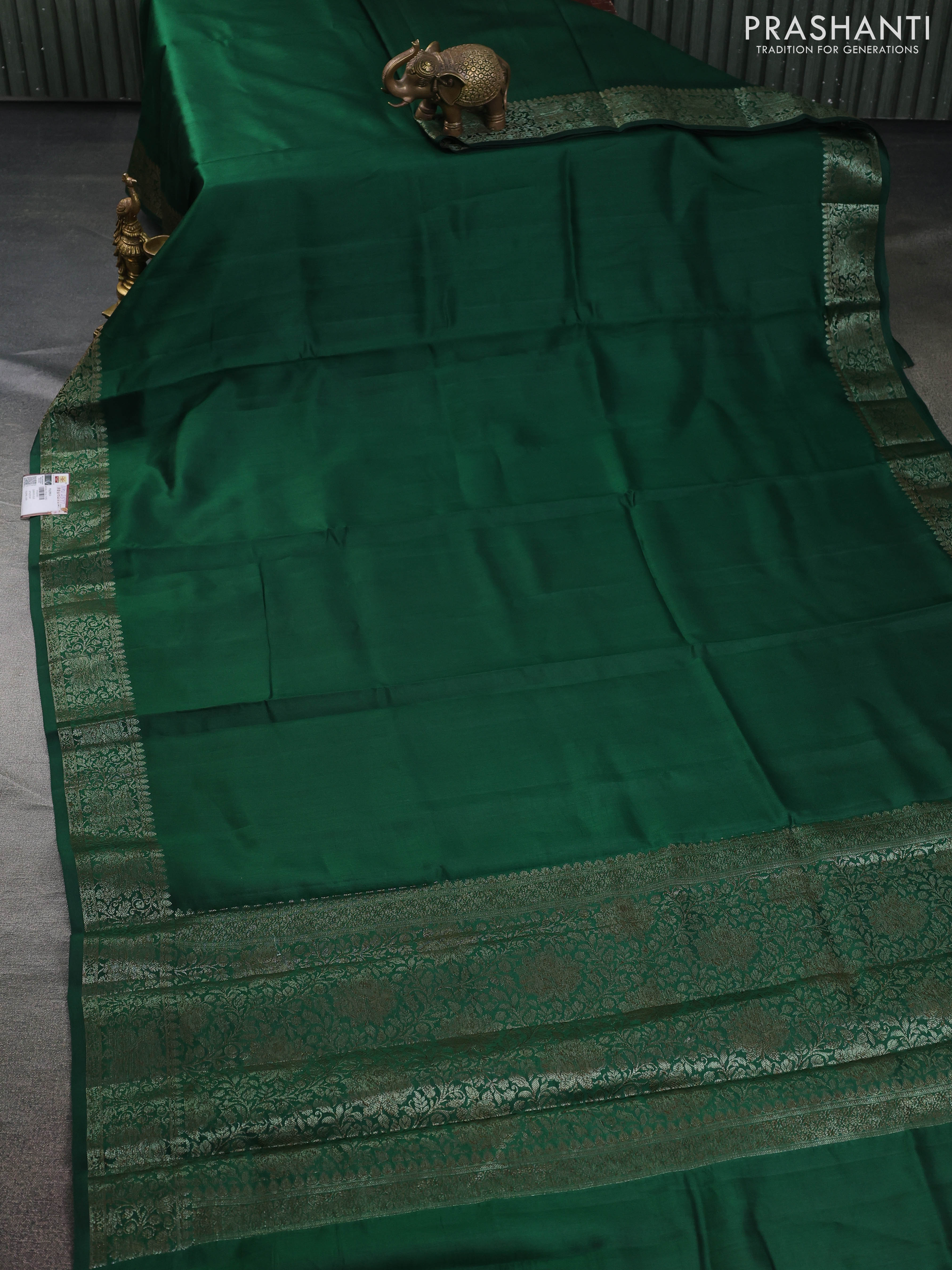 Chiniya silk saree dark green and rust shade with plain body and woven border