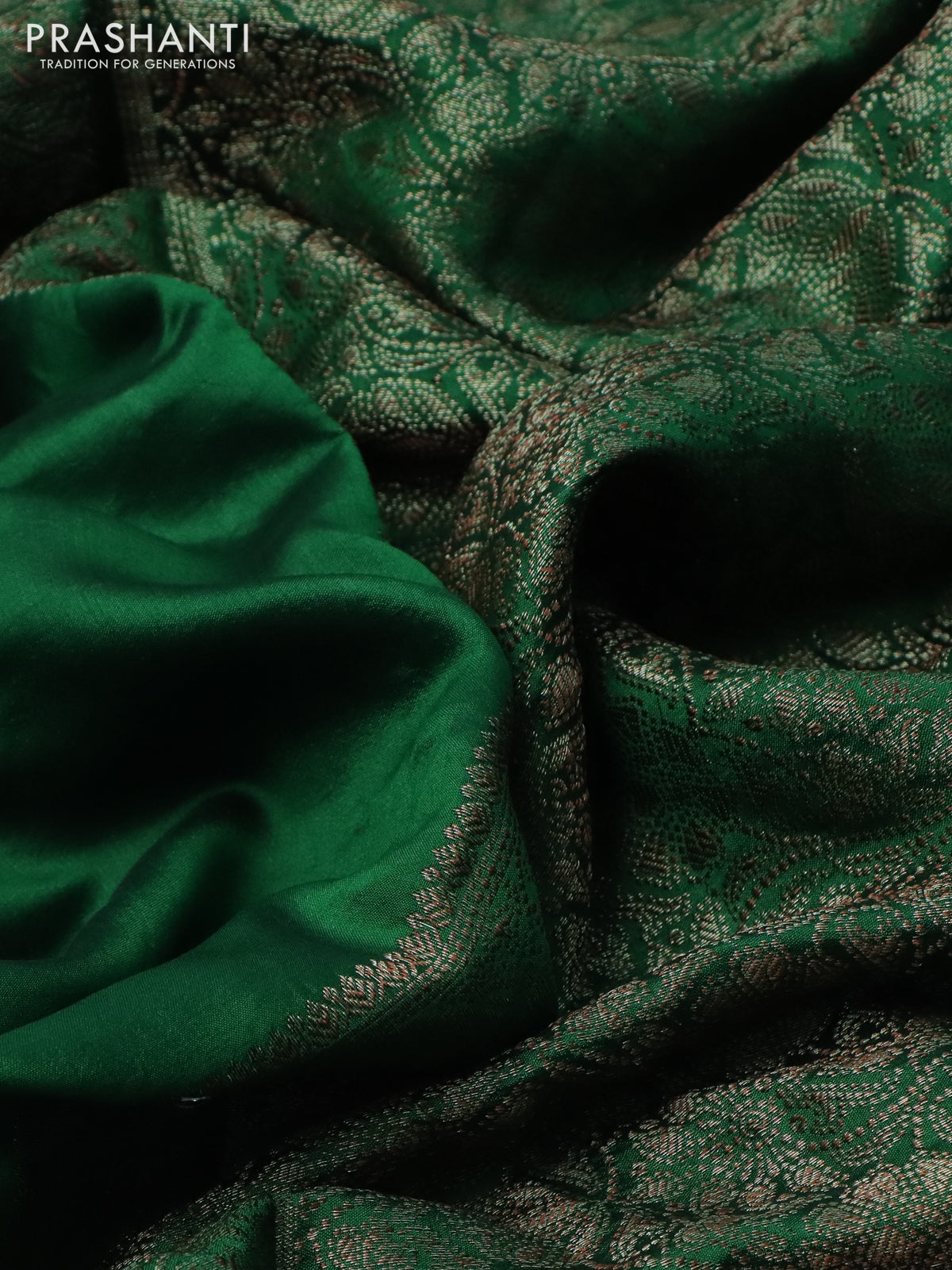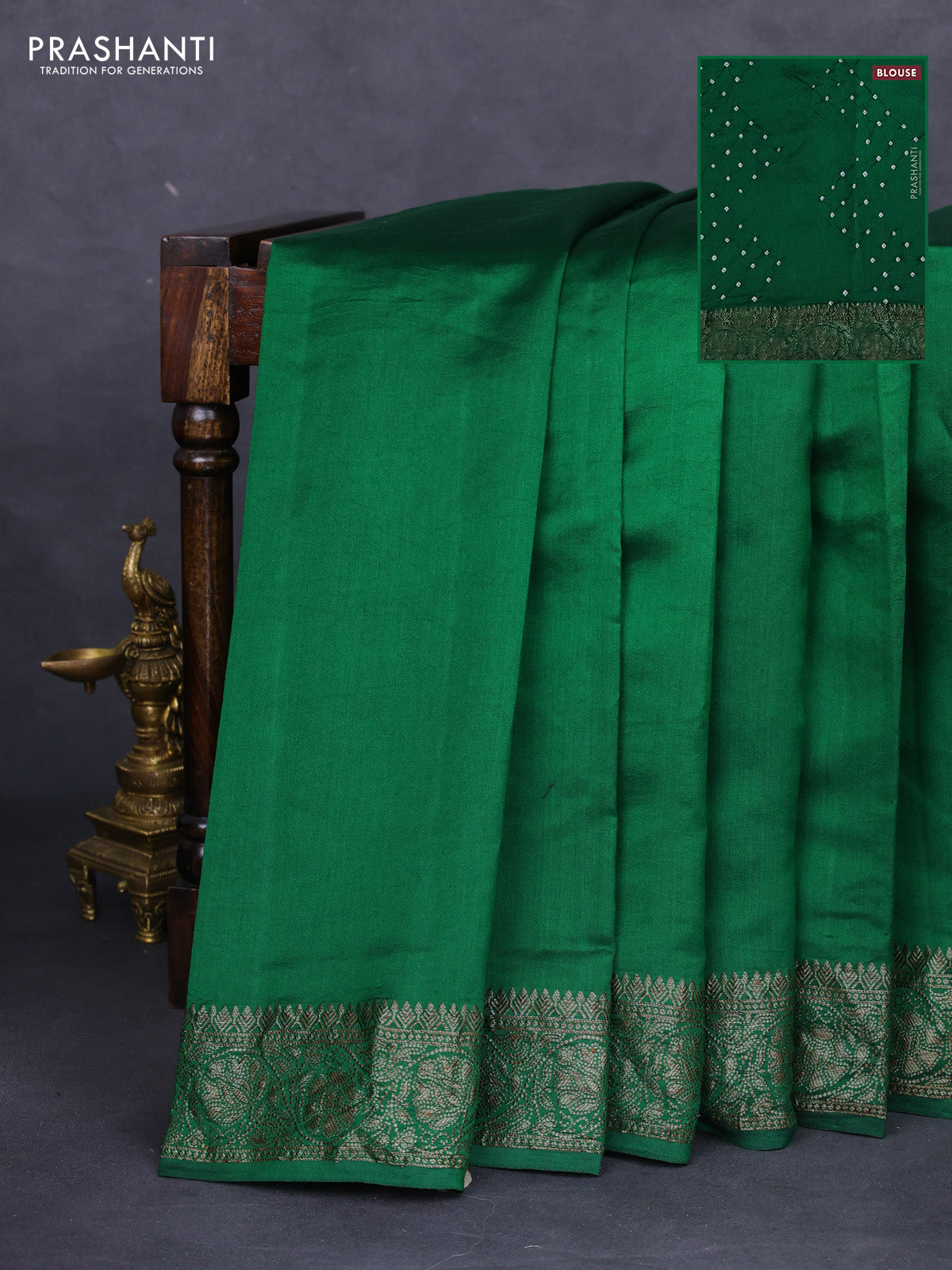 Chiniya silk saree green with plain body and woven border