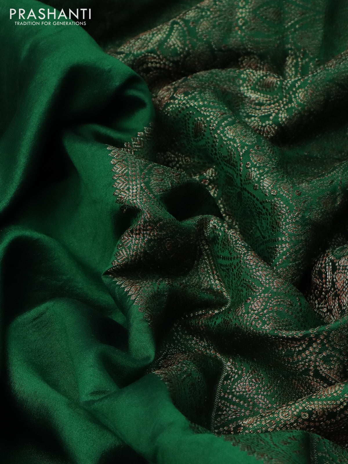 Chiniya silk saree green with plain body and woven border