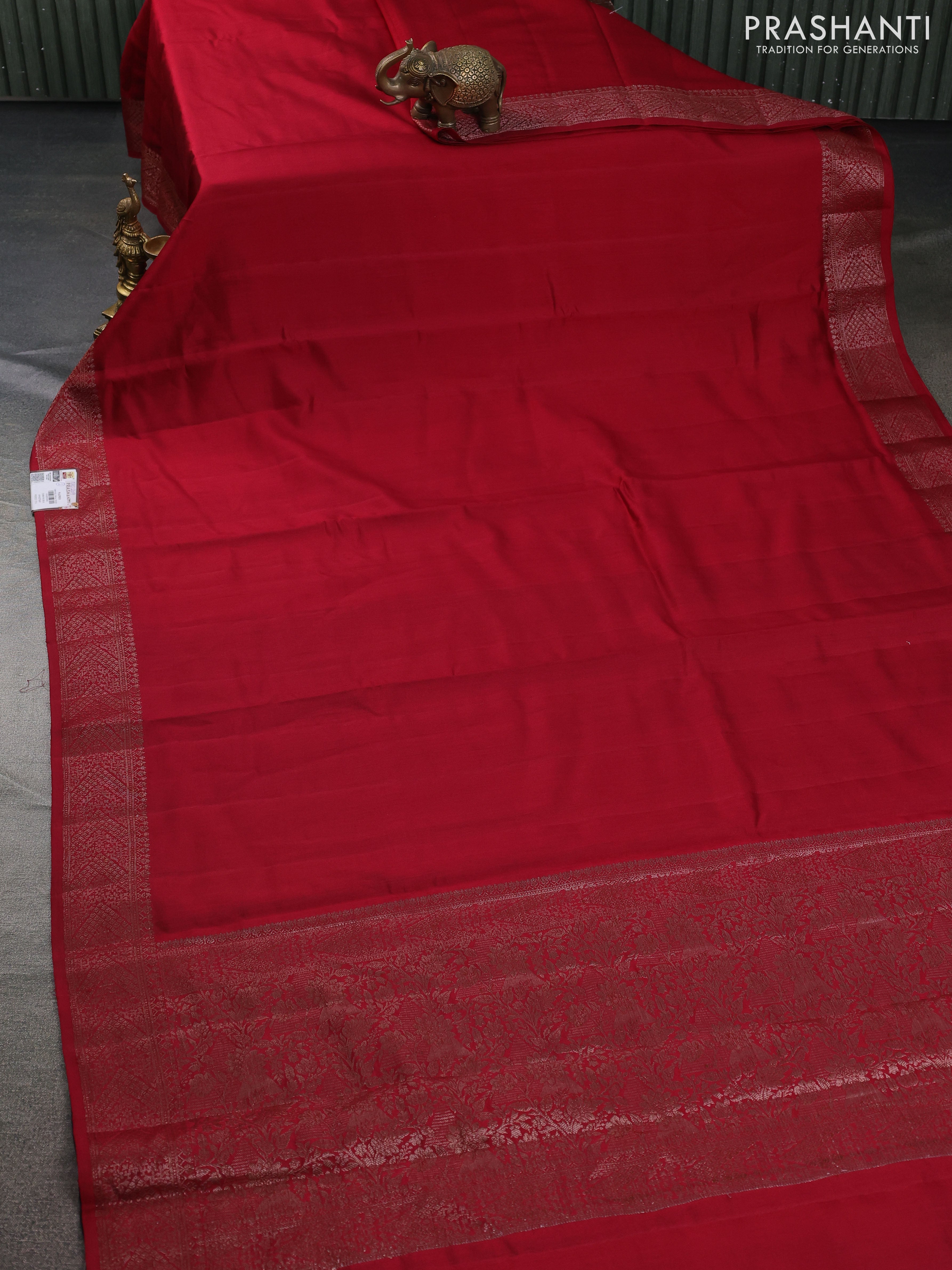 Chiniya silk saree maroon and deep jamun with plain body and woven border