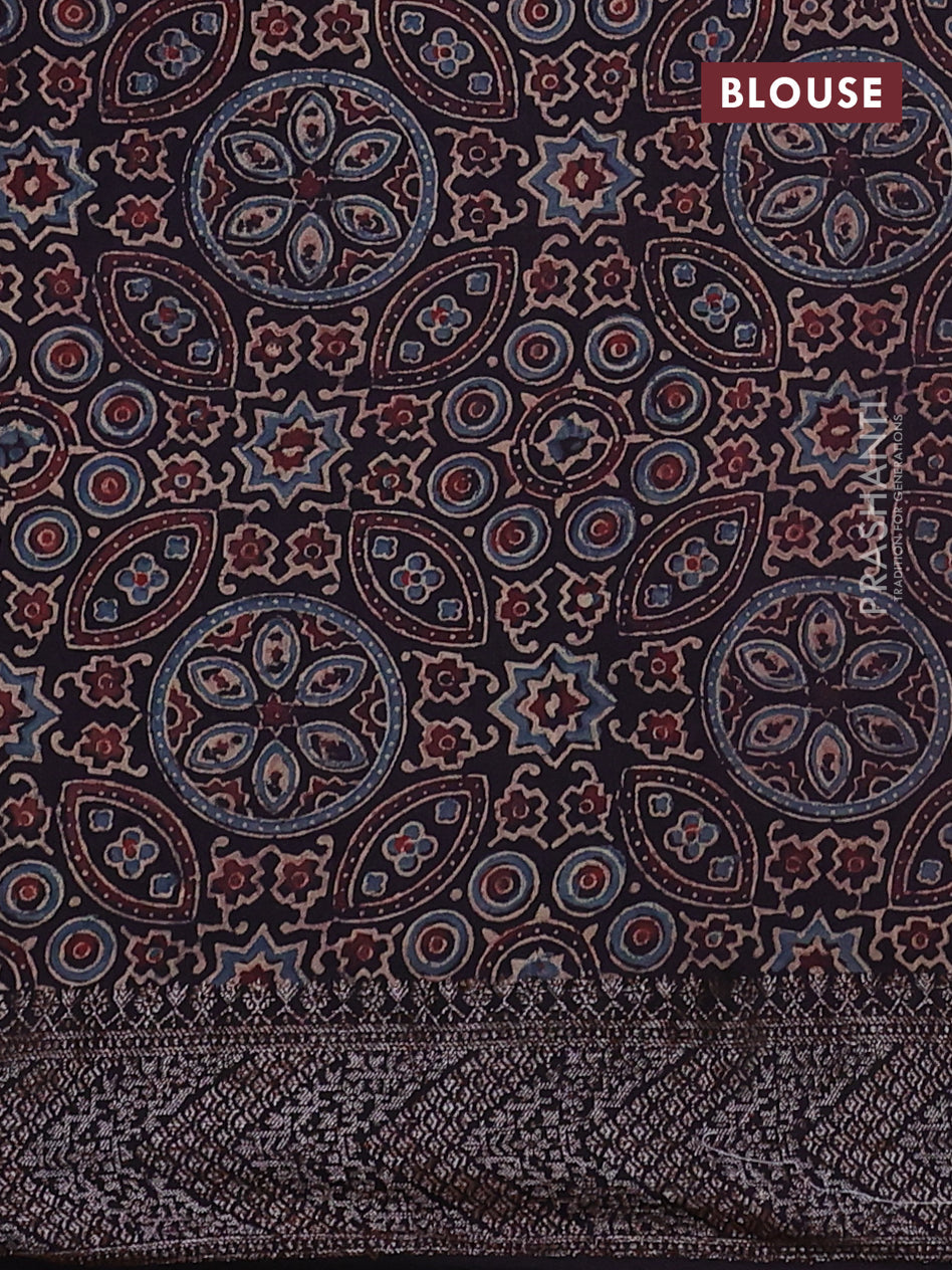 Material : Chiniya Silk SILK MARK CERTIFIED Blouse : Ajrakh printed blouse Length of saree : 6.2 mts (5.5 mts... Read more