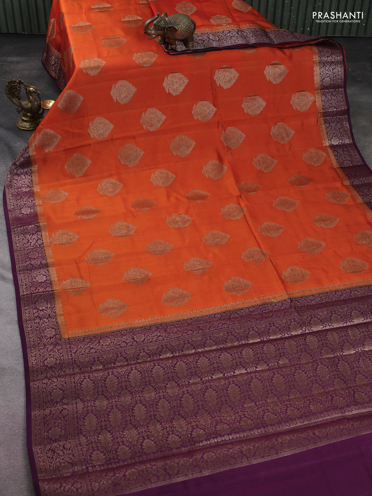 Chiniya silk saree orange and wine shade with woven buttas and woven border