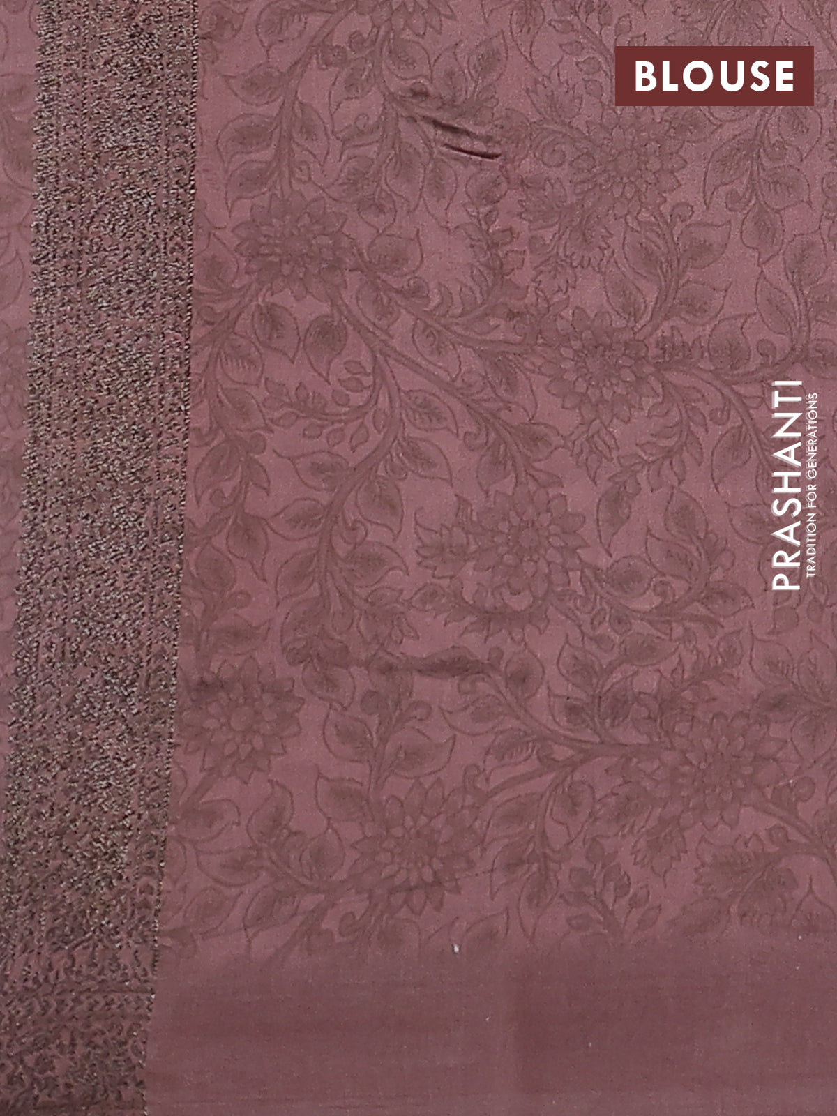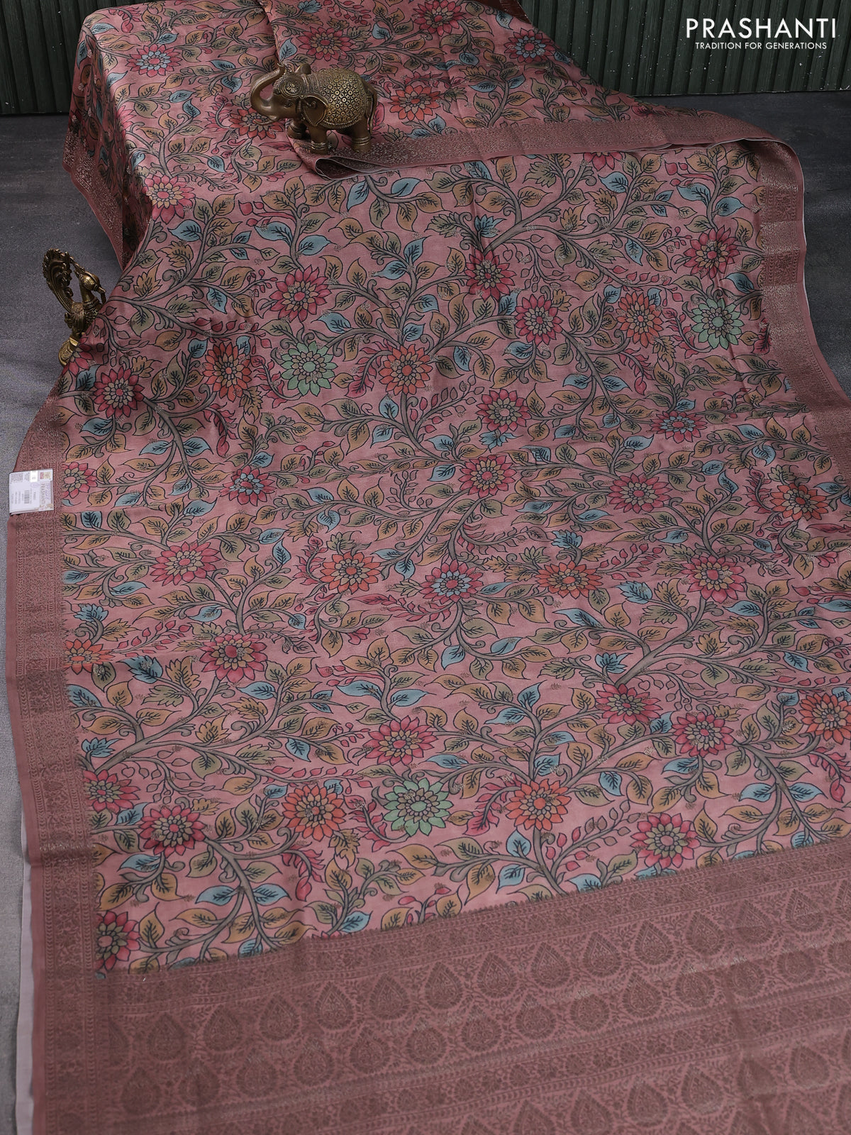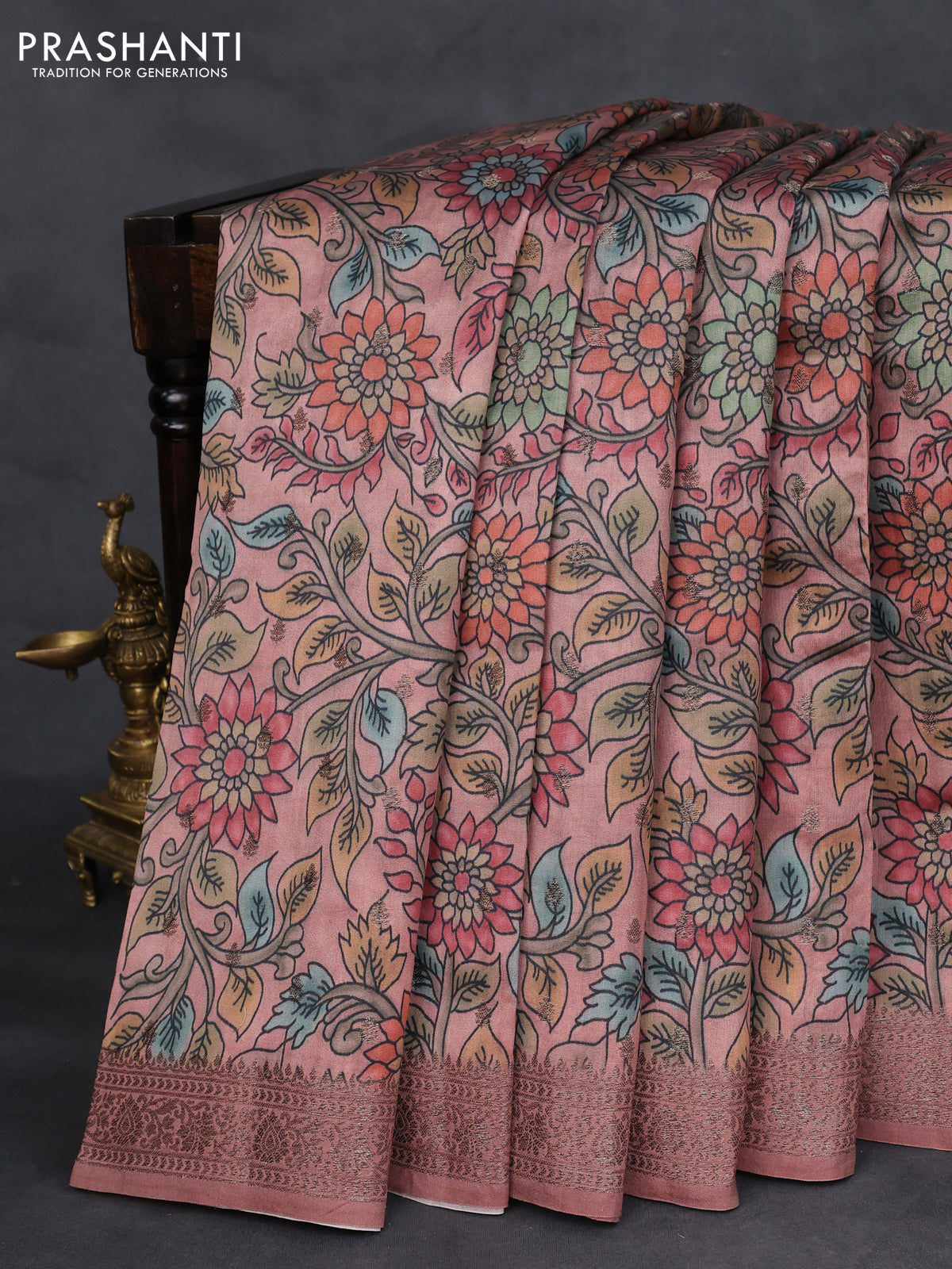 Chiniya silk saree pastel brown with allover woven buttas & kalamkari digital prints and banarasi style border