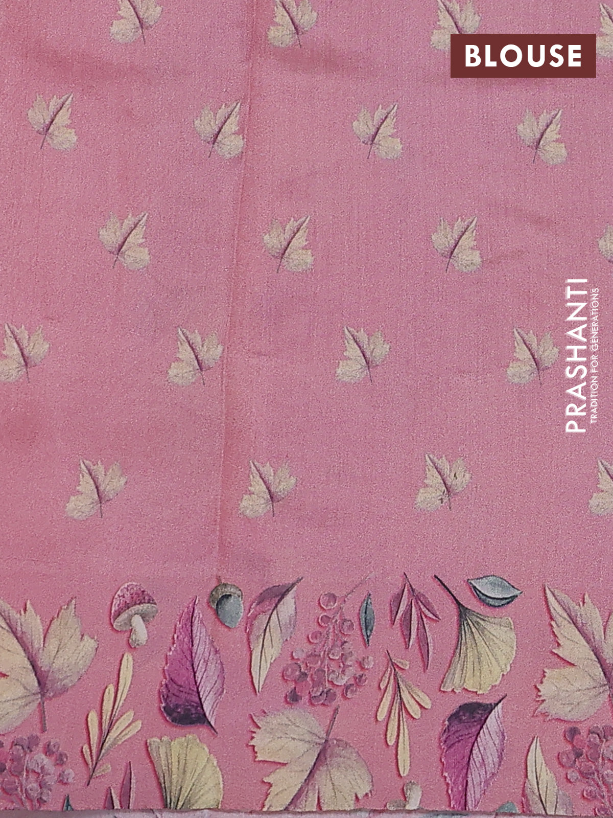 Chiniya silk saree peach pink with zari woven buttas & floral digital prints and floral digital printed border