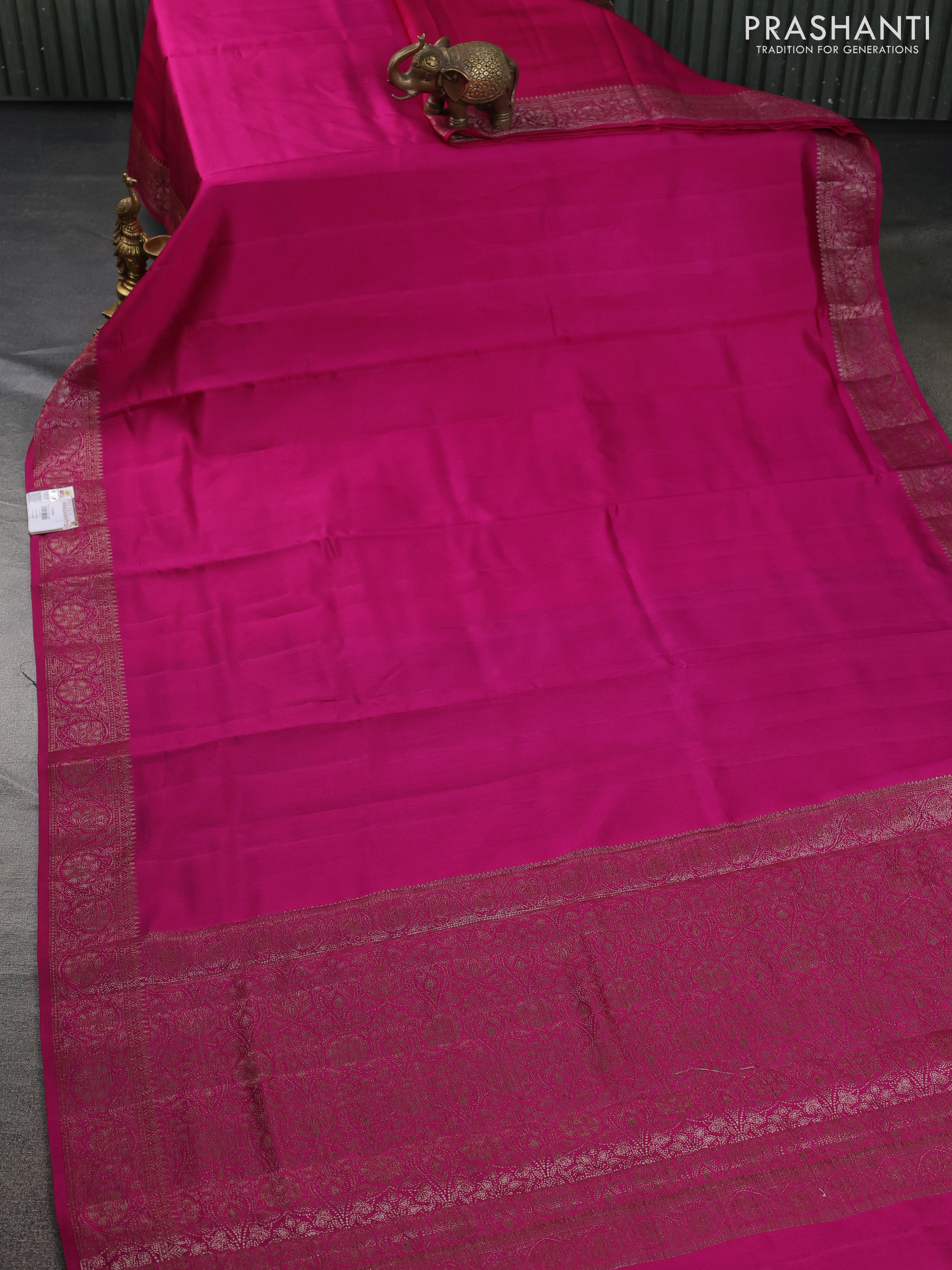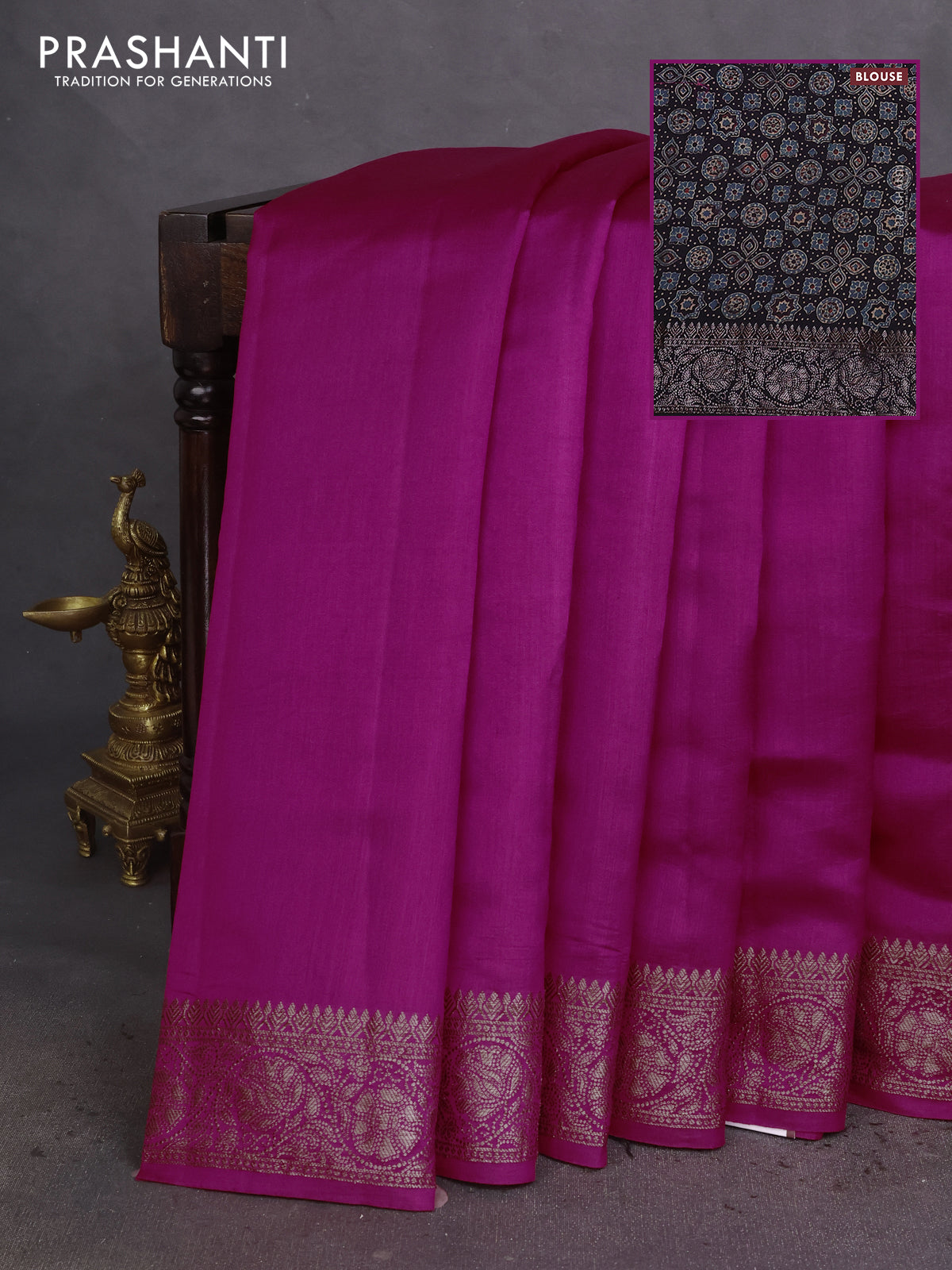 Chiniya silk saree pink and deep jamun with plain body and woven border