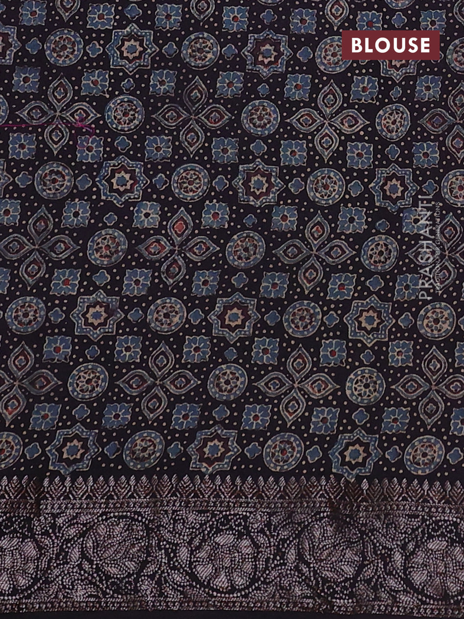 Material : Chiniya Silk SILK MARK CERTIFIED Blouse : Ajrakh printed blouse Length of saree : 6.2 mts (5.5 mts... Read more