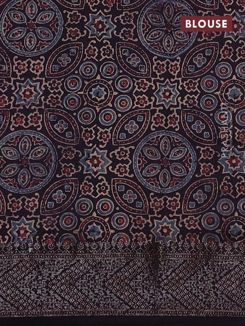 Material : Chiniya Silk SILK MARK CERTIFIED Blouse : Ajrakh printed blouse Length of saree : 6.2 mts (5.5 mts... Read more
