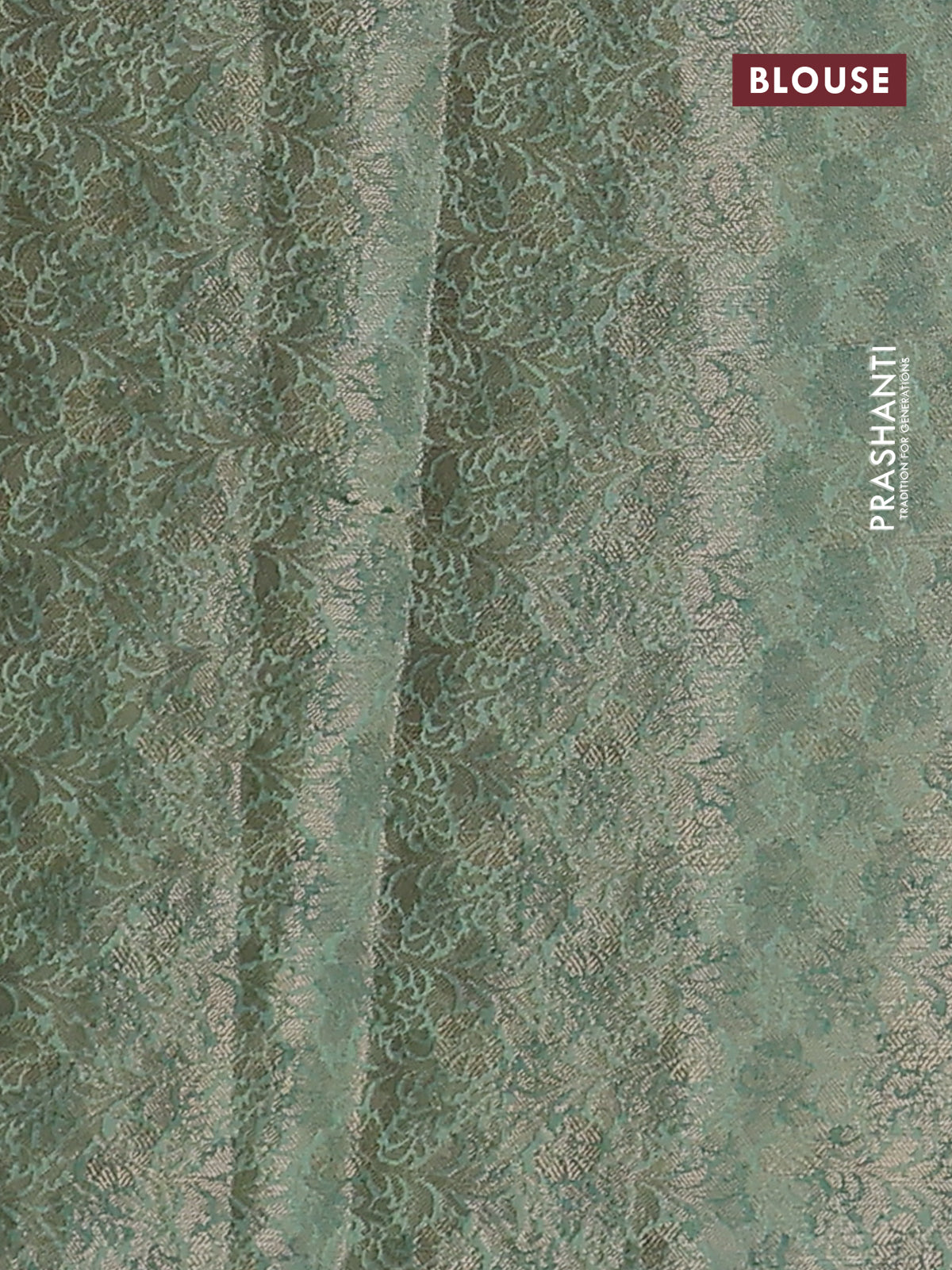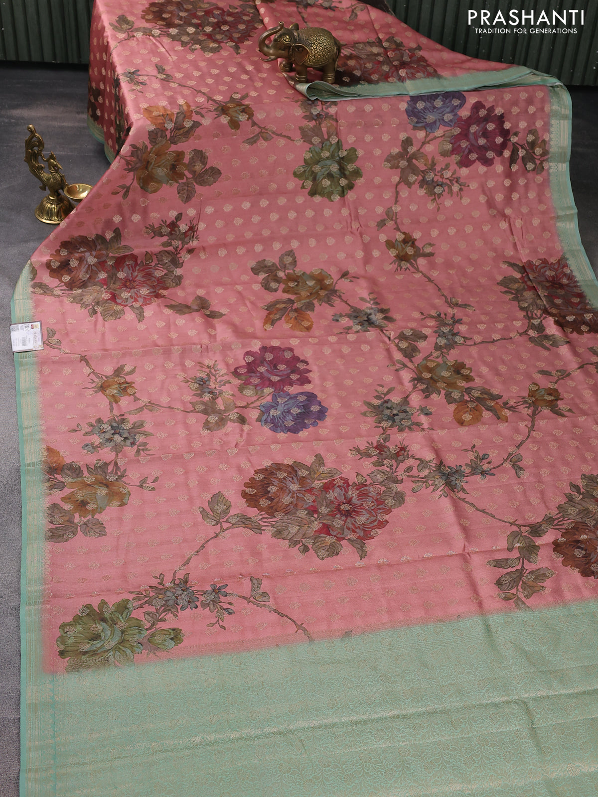 Chiniya silk saree rust shade and pastel green with zari woven buttas & digital prints and zari woven border