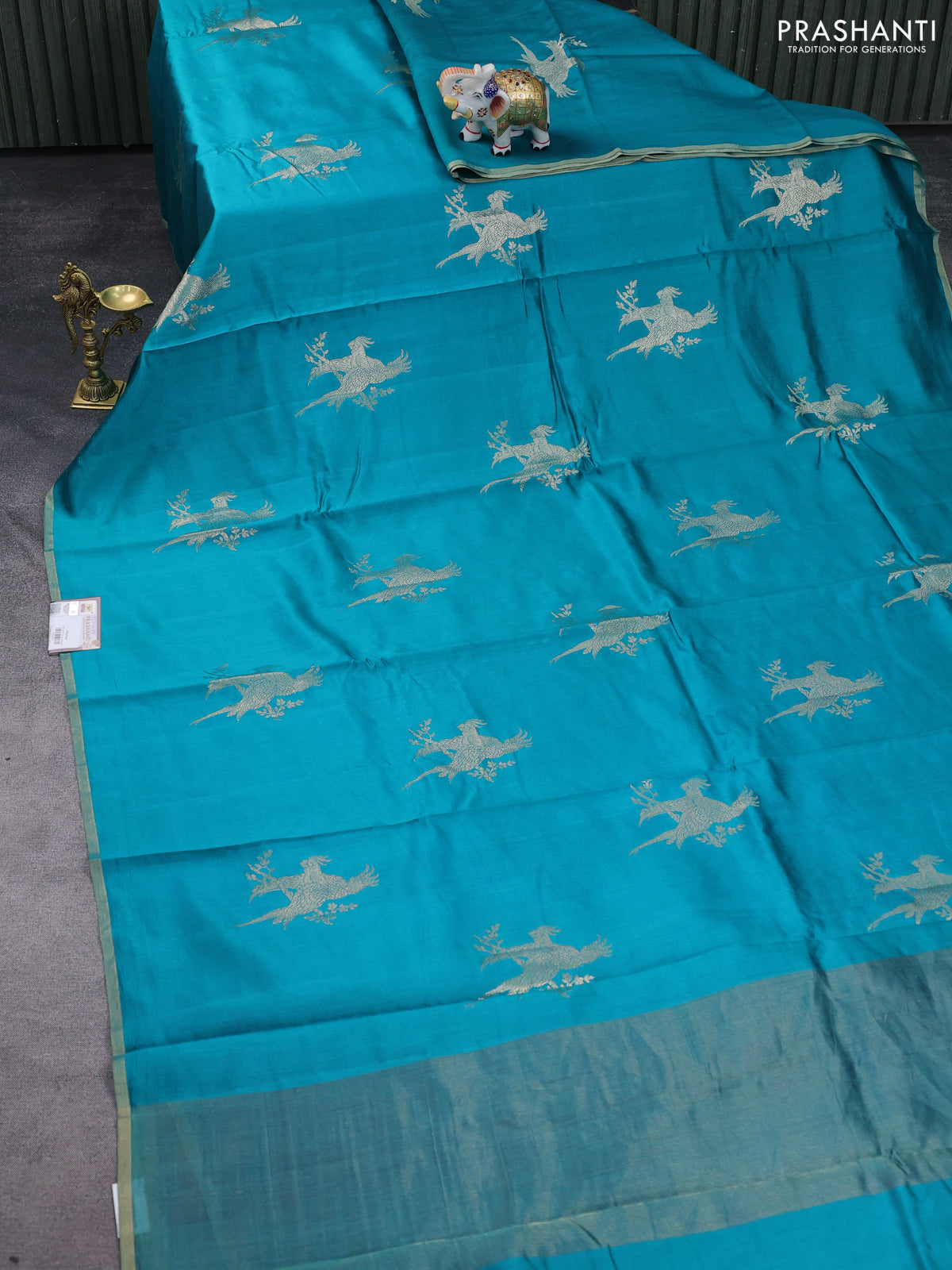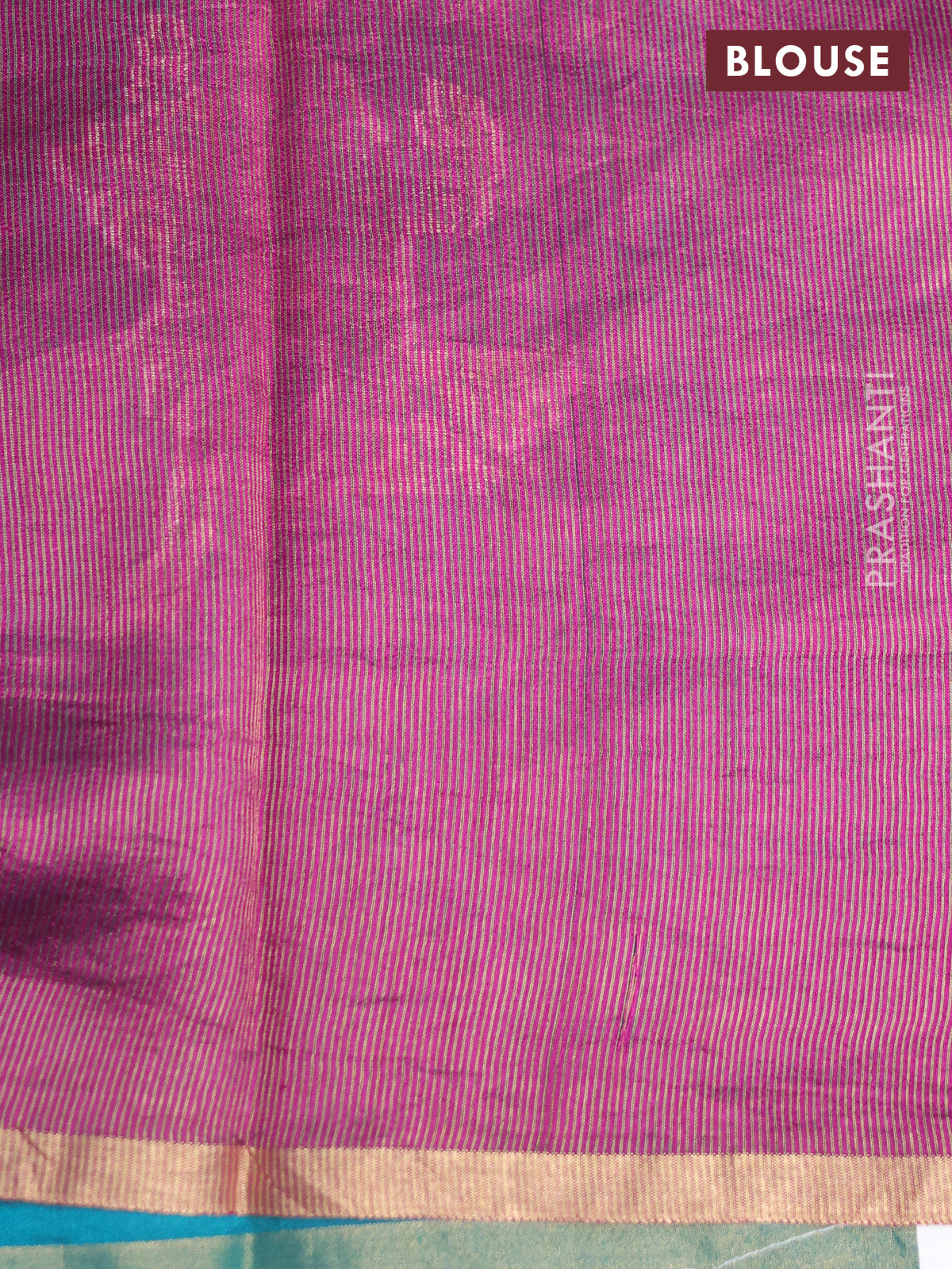 Chiniya silk saree teal green and magenta pink with parrot zari woven buttas and zari woven piping border
