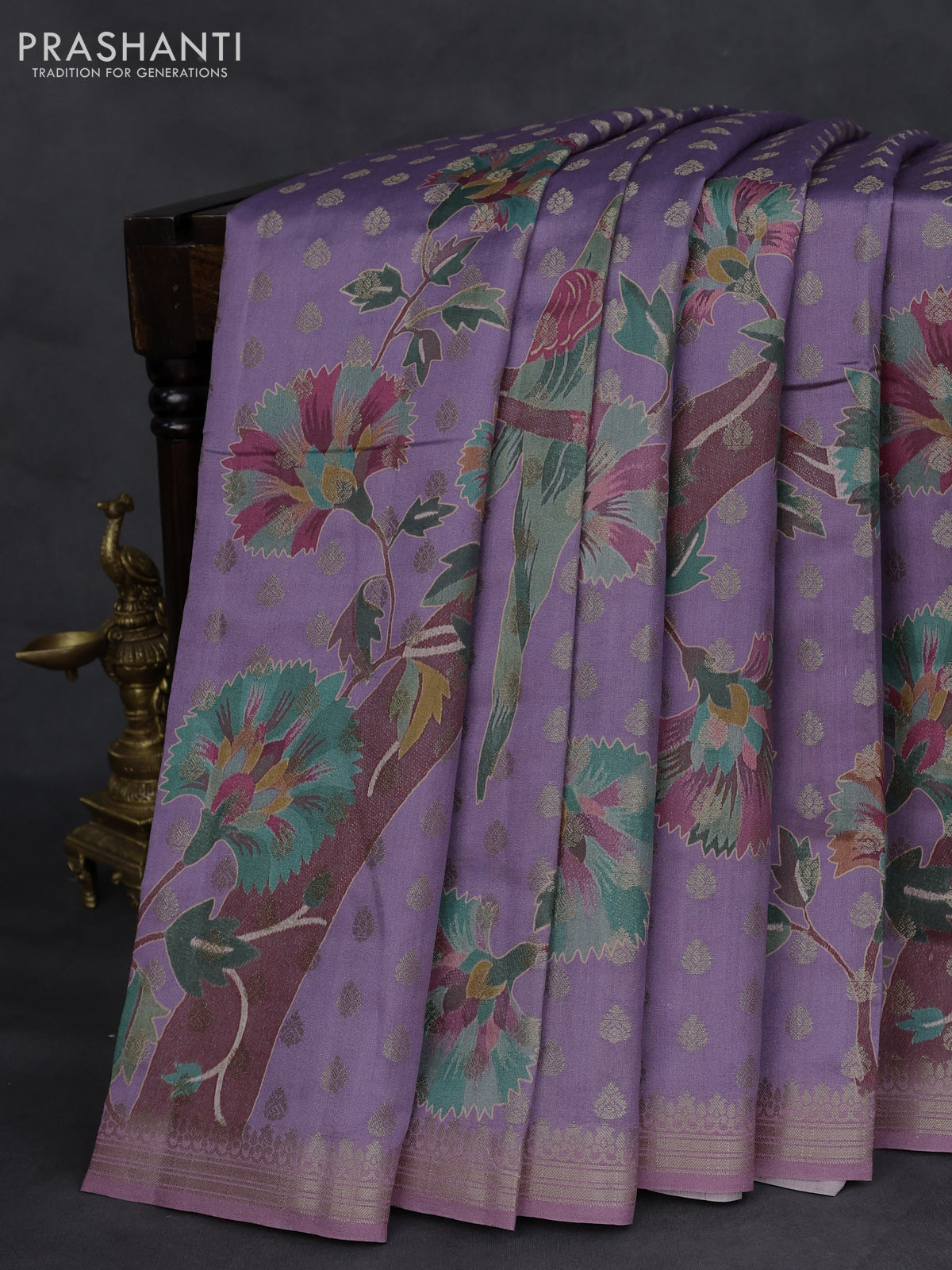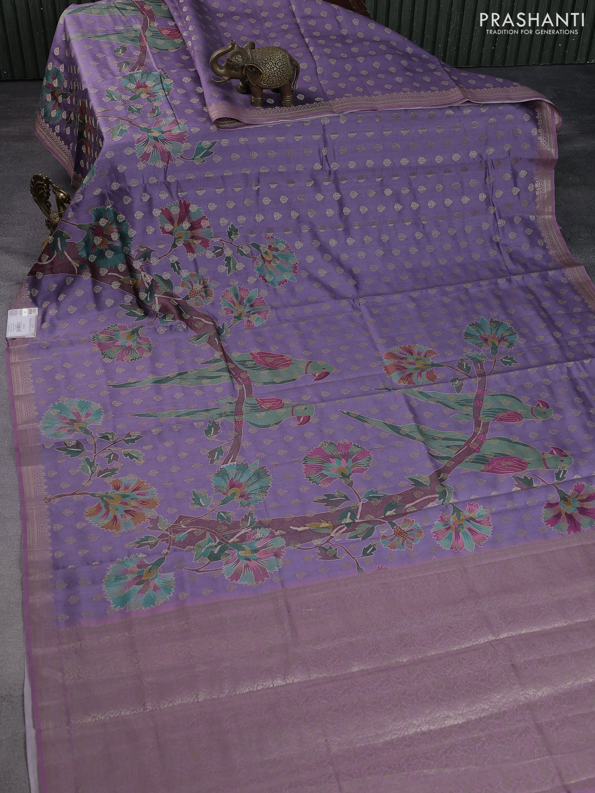 Chiniya silk saree violet shade and mauve pink with woven buttas & digital prints and zari woven border