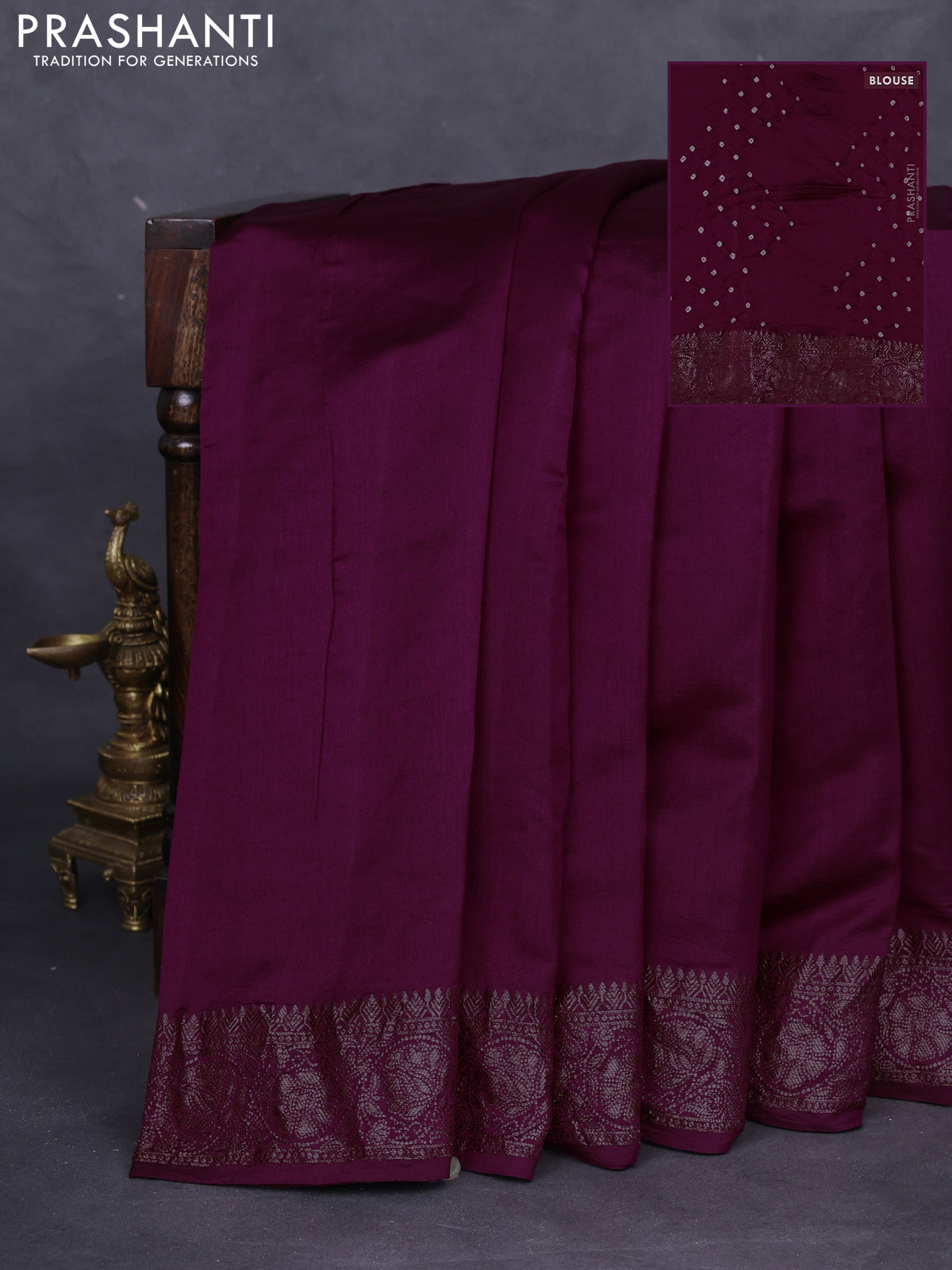 Chiniya silk saree wine shade with plain body and woven border