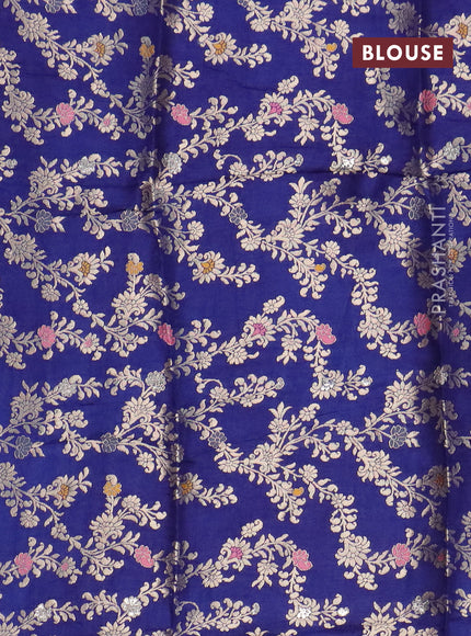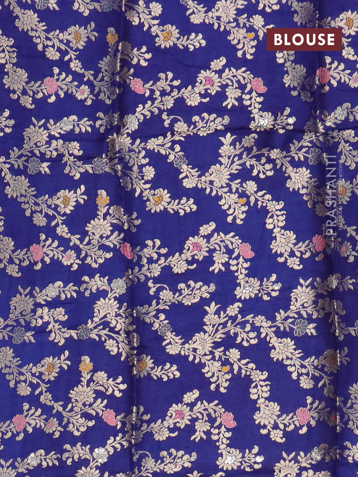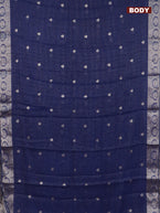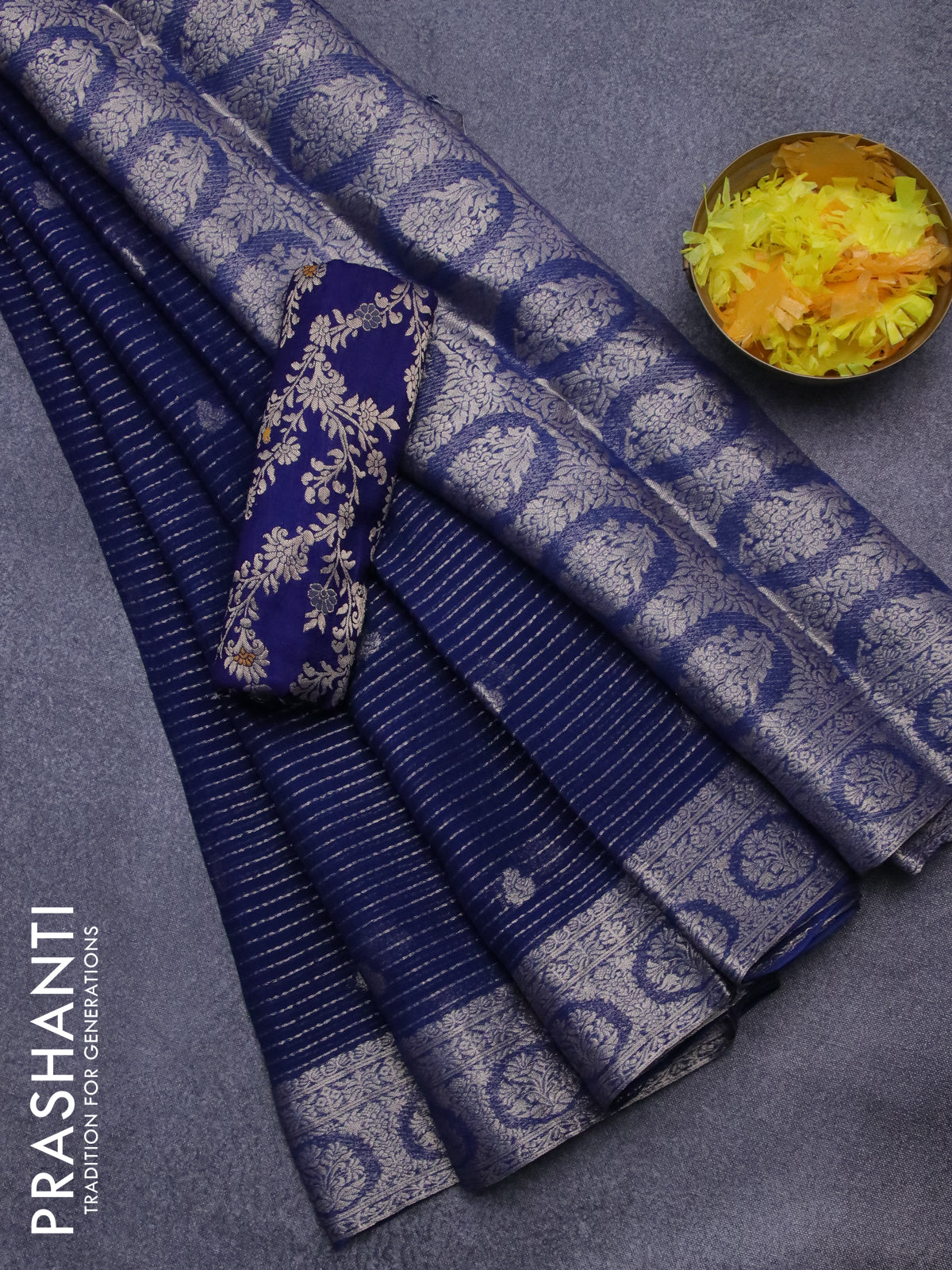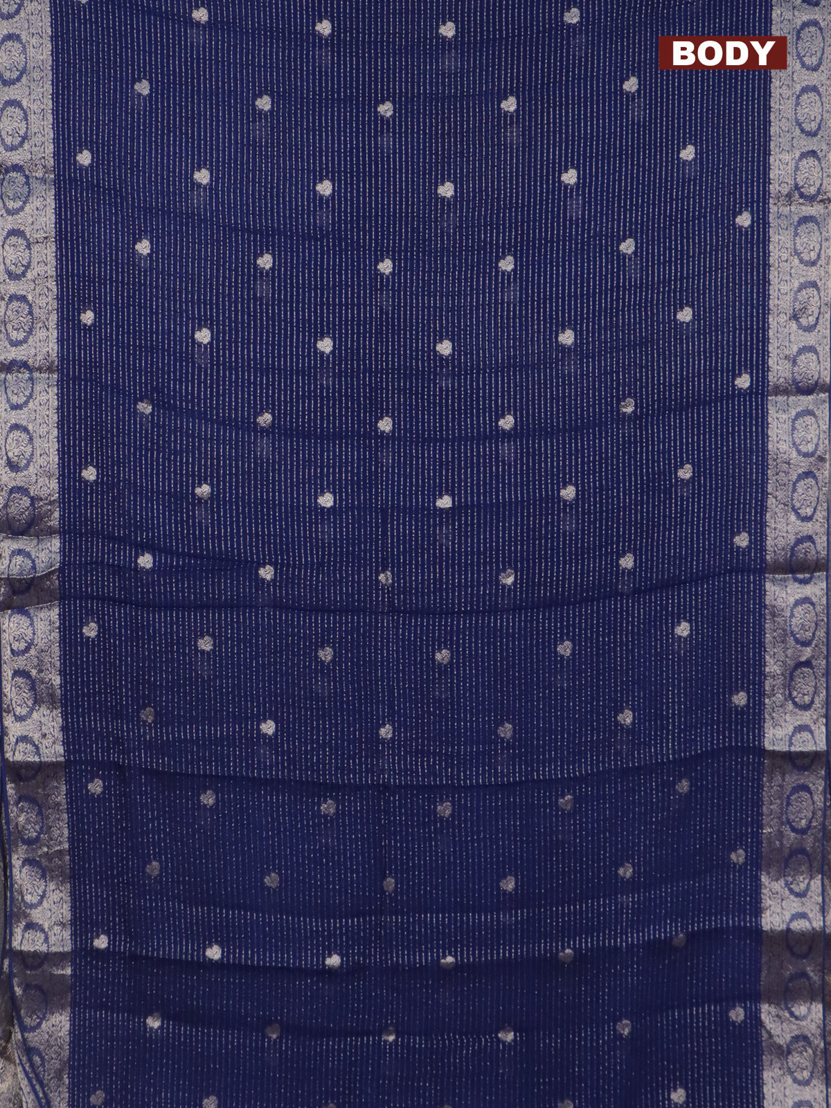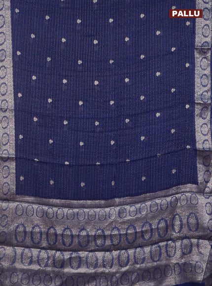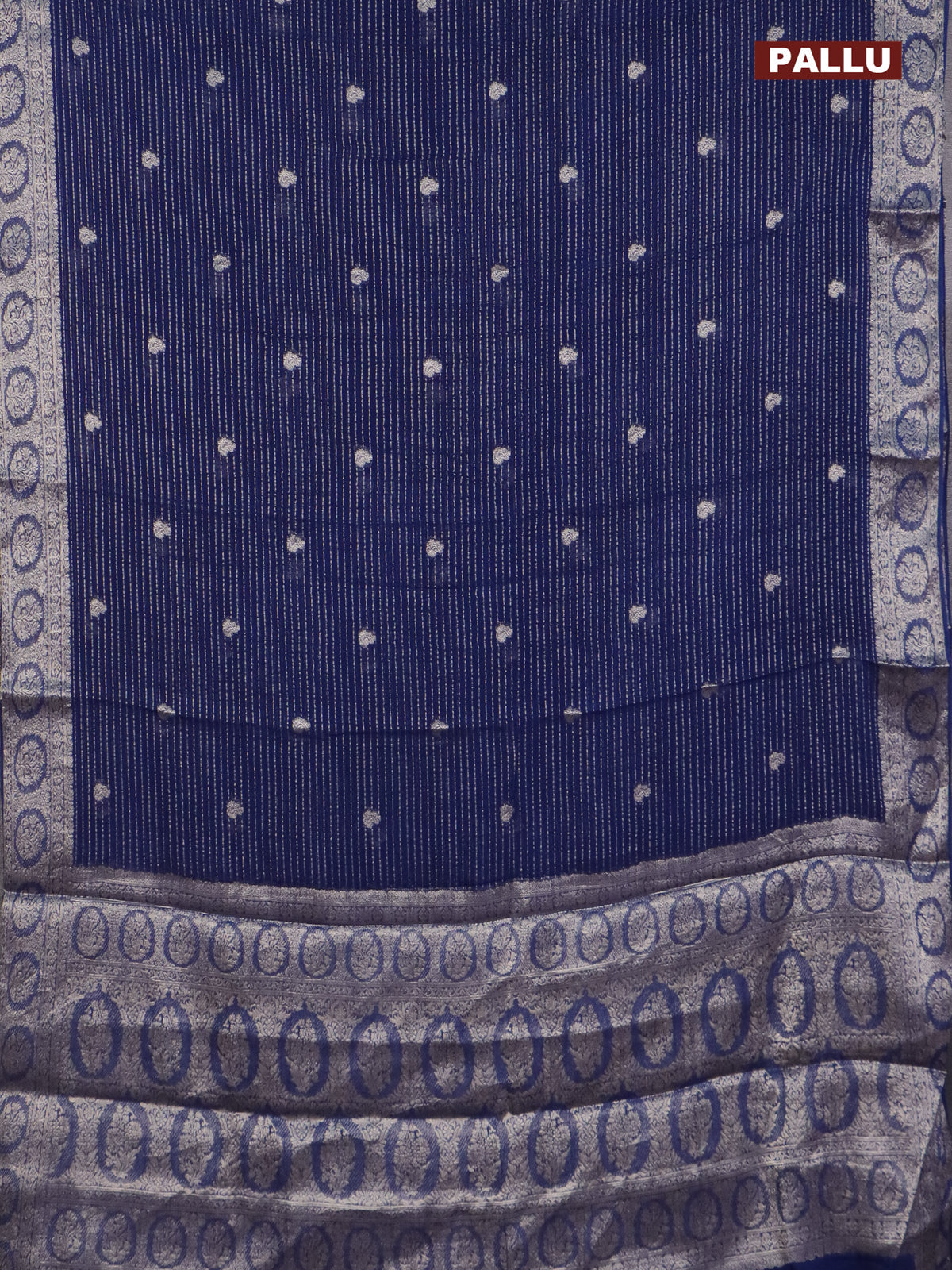 Chinon silk saree dark blue with allover zari weaves & buttas and zari woven border - banarasi brocade blouse