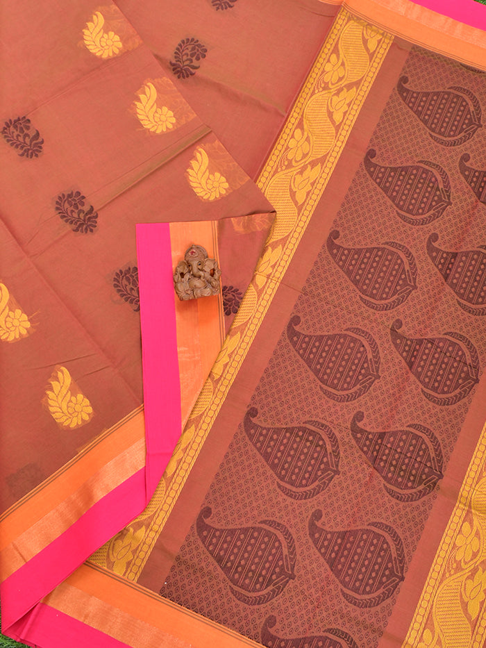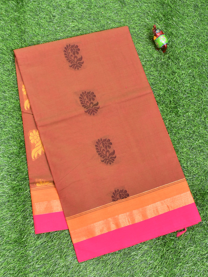 Coimbatore Cotton Brown Color Butta Saree with Plain Border