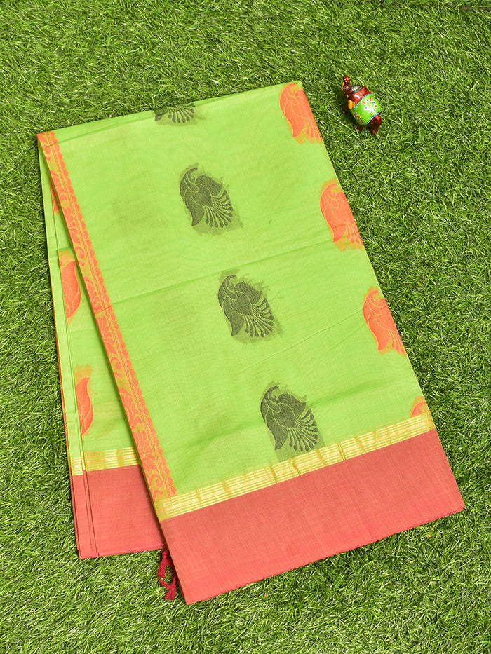 Coimbatore Cotton Green Butta Saree with Plain Border