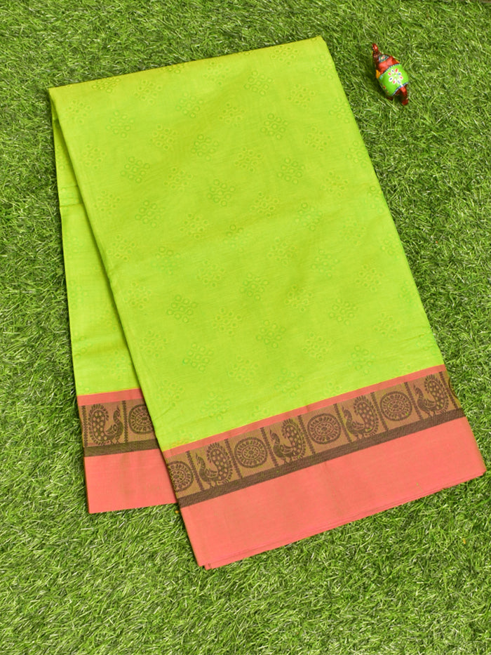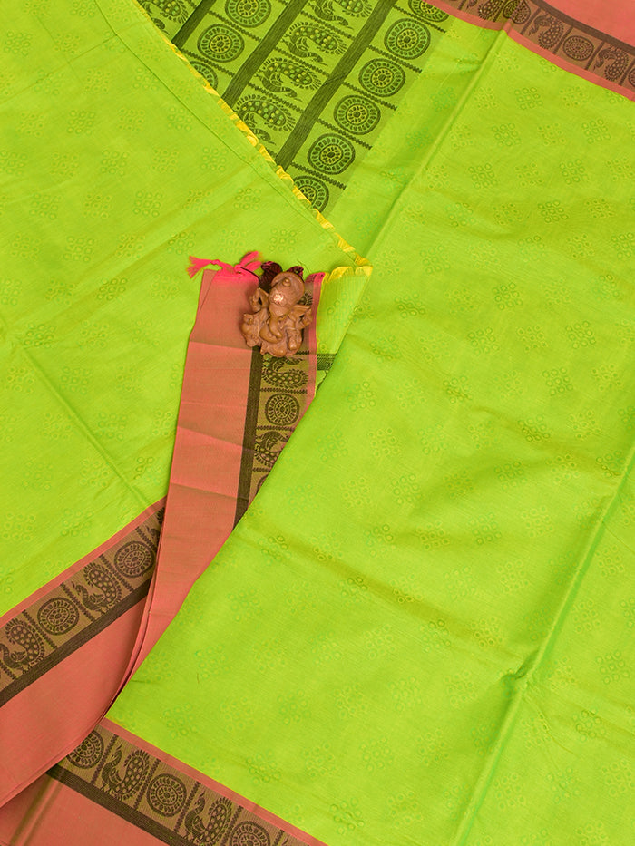 Coimbatore Cotton Green Fancy Emboss Saree with Thread Woven Border