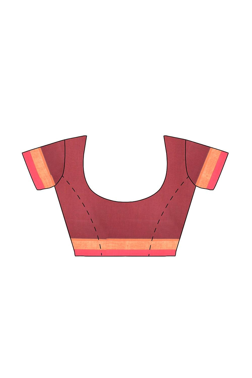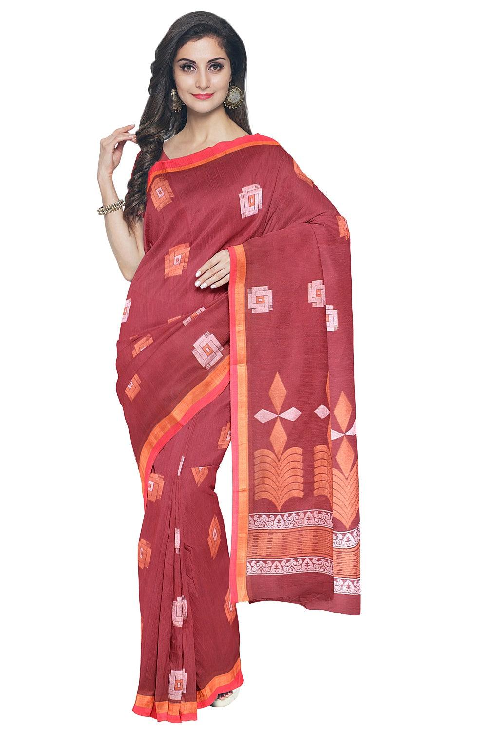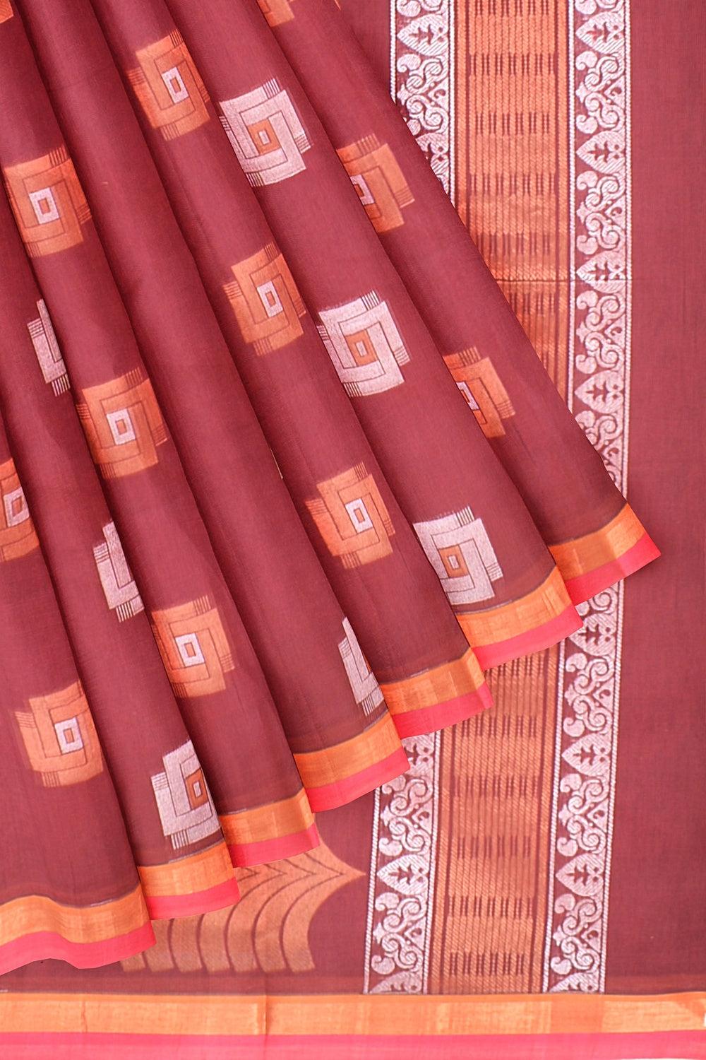 Coimbatore Cotton Maroon Color Saree with Copper and Silver Zari Woven Buttas
