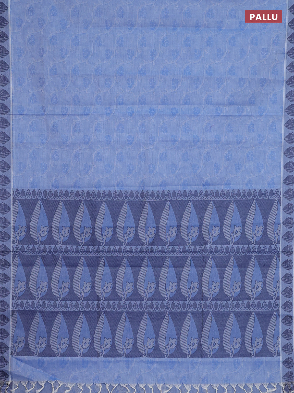 Coimbatore cotton saree blue shade with allover self emboss and thread woven border