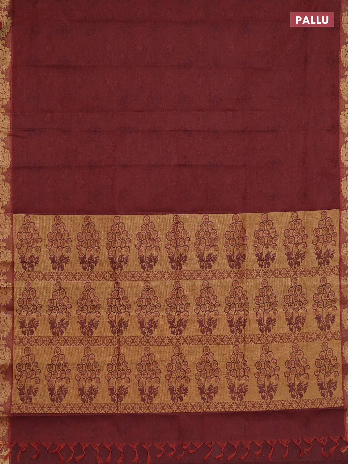 Coimbatore cotton saree brown shade with allover self emboss and thread woven border