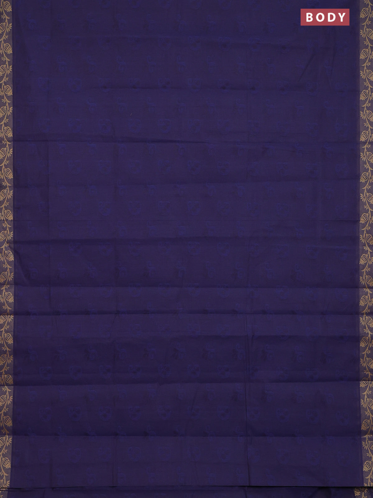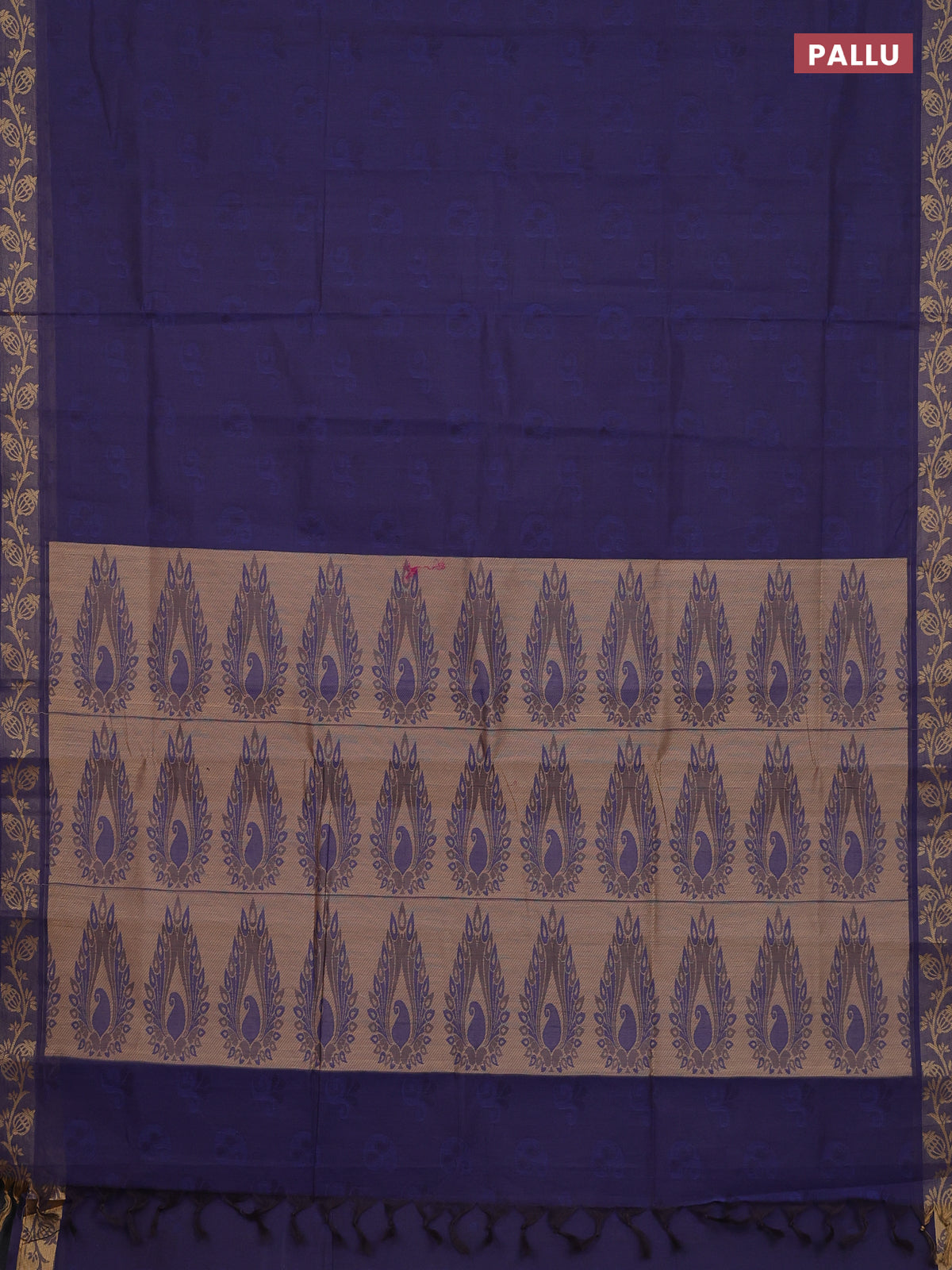 Coimbatore cotton saree dark blue and sandal with allover self emboss and thread woven border