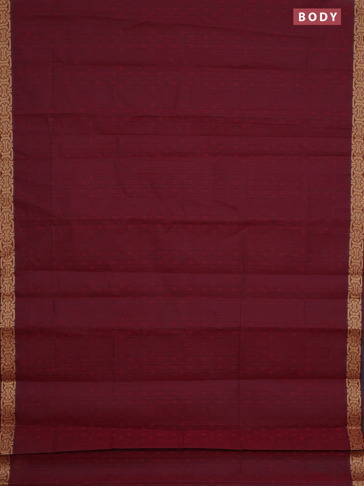 Coimbatore cotton saree maroon and sandal with allover self emboss and thread woven border