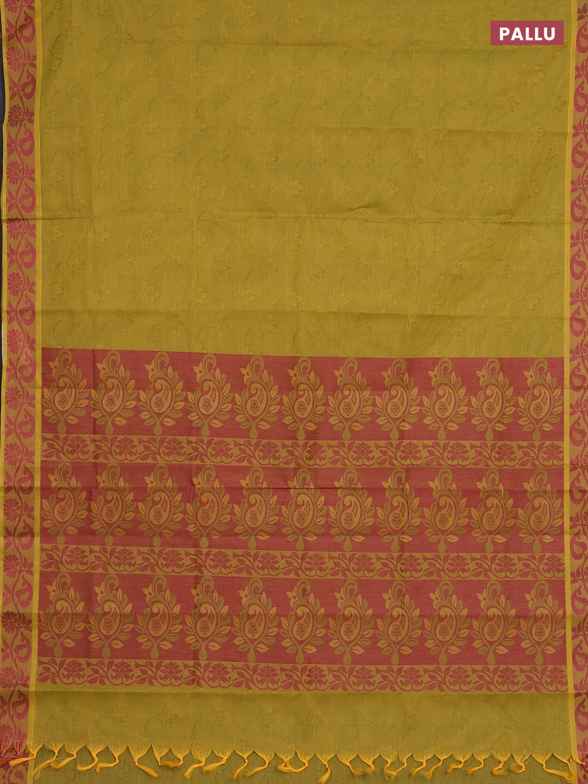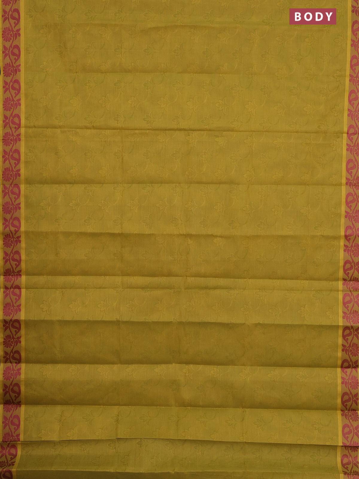 Coimbatore cotton saree mustard green and pink with allover self emboss and thread woven border