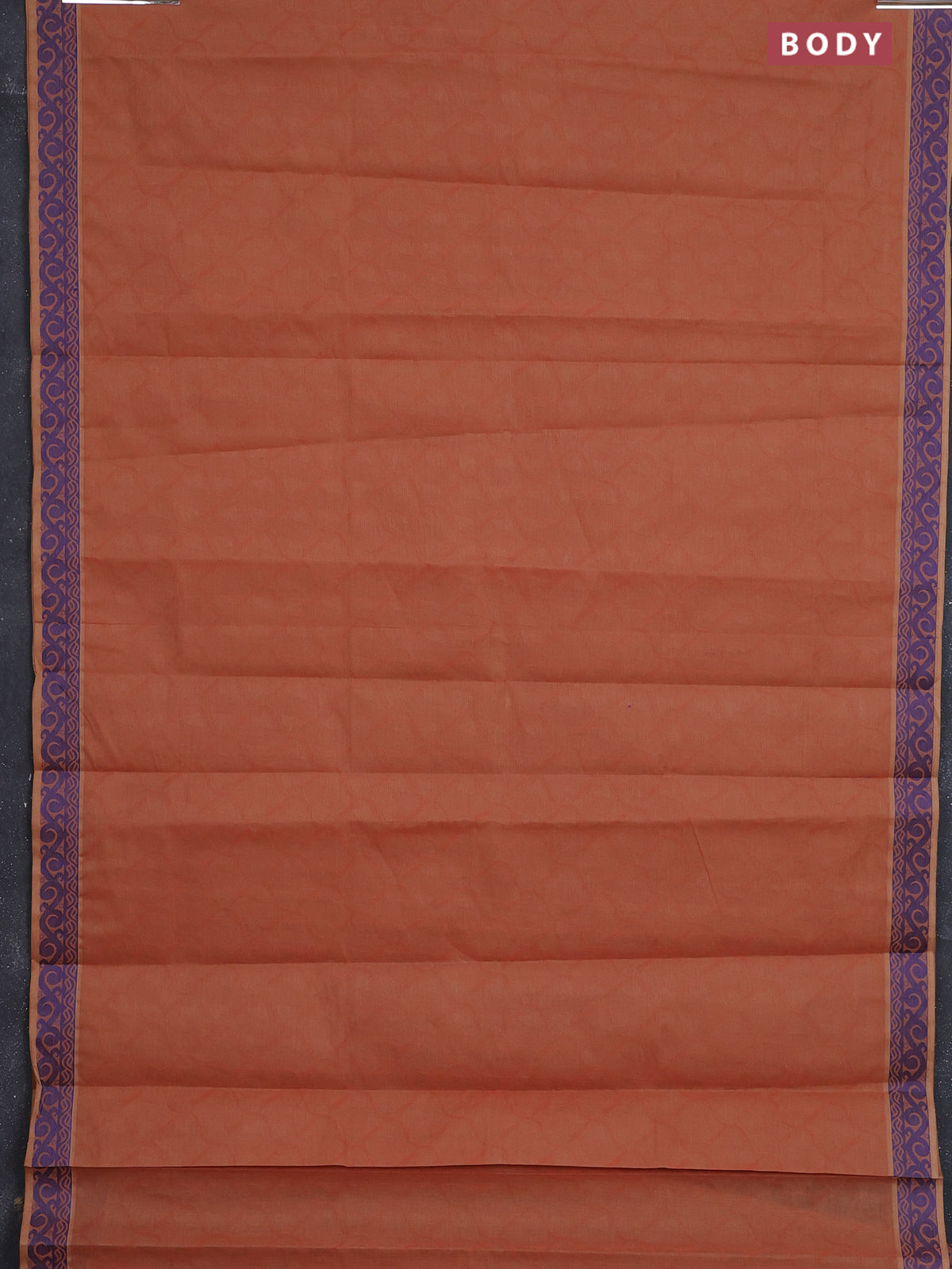 Coimbatore cotton saree rust shade and blue with allover self emboss and thread woven border